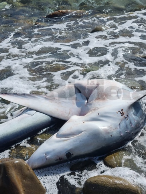 Lo squalo è spiaggiato a Bussana di Sanremo