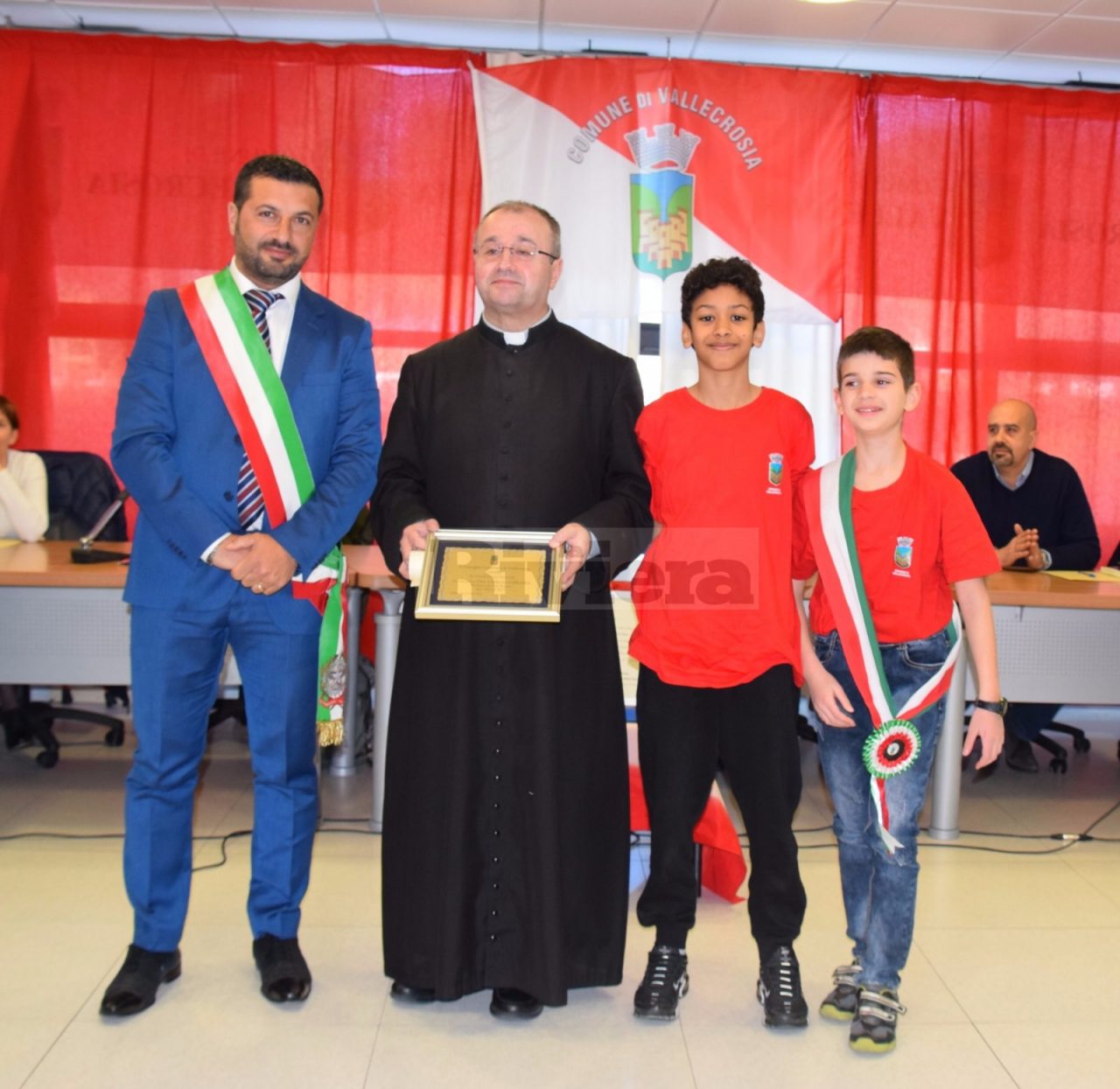 E’ stata conferita, stamani, dal Consiglio comunale di Vallecrosia, riunitosi in sessione straordinaria, alla presenza anche del Consiglio dei Ragazzi, la cittadinanza onoraria a Umberto Collecchia, compianto parroco cittadino. Ed è stato anche dietro input dell’attuale parroco, Antonio Robu, che è stato conferito il riconoscimento postumo. Del Ccr c’erano: Mattia Ferrari, sindaco, residente a Perinaldo; Riccardo Neri, vicesindaco di Vallecrosia ed Emanuele Bettonagli, presidente del Consiglio comunale, di Vallecrosia.