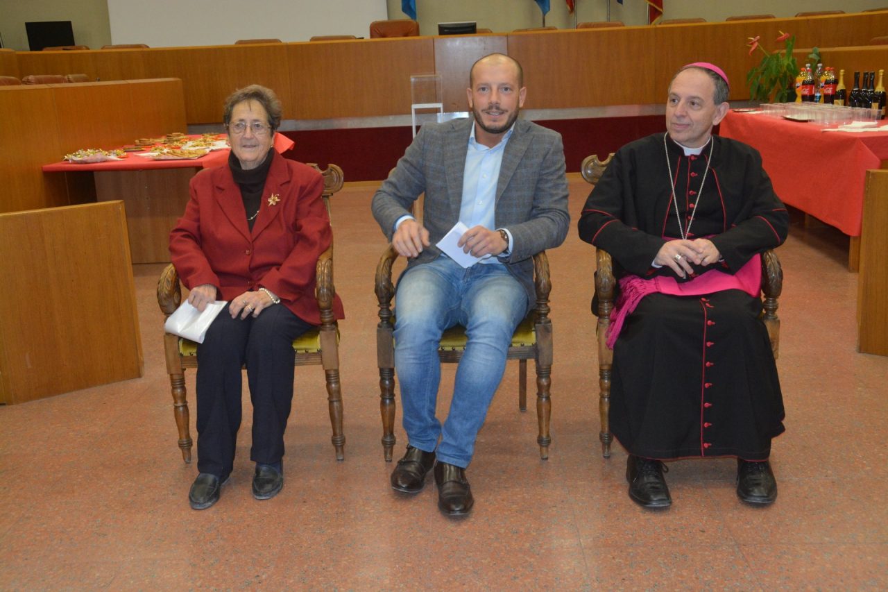 A fare gli onori di casa, il sindaco Ioculano. Presente anche il vescovo Antonio Suetta, che ha smentito la notizia della vendita del palazzo vescovile