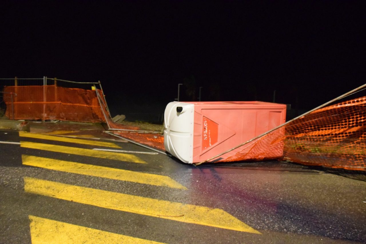 A San Lorenzo al mare, le raffiche hanno strappato il tendono di una palestra e decine sono gli interventi per materiale pericolante. Sono state calcolate raffiche fino a 116 chilometri all’ora, degne di un uragano. Decine, inoltre, gli interventi per insegni, tegole o rami pericolanti.