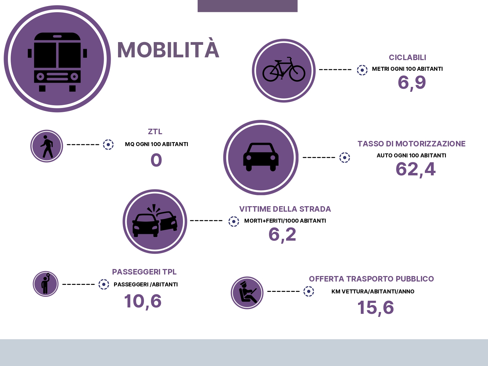 Male il settore mobilità: carenti sia l’offerta del trasporto pubblico (rapporto tra chilometri percorsi da una vettura e gli abitanti in un anno, 88ª posizione e il numero totale degli imperiesi che si affida ai mezzi pubblici, 94° posto in Italia. Sopra la media (58) per i metri equivalenti di piste ciclopedonali e per il tasso di motorizzazione (26). I ponentini sono 66° per i metri quadrati di Ztl per abitante e 70° nel conto di morti e feriti in seguito a incidenti stradali.