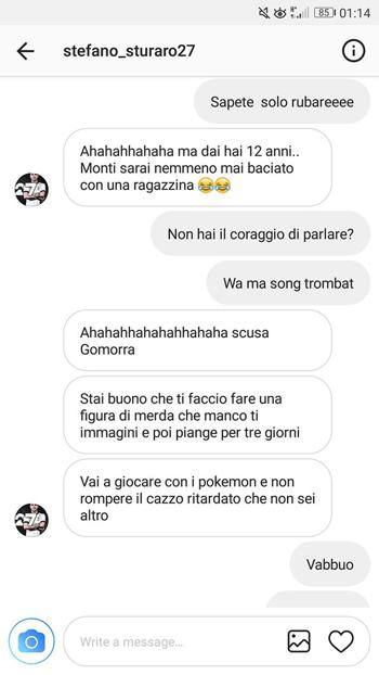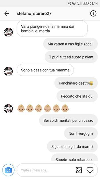 Travolto dall’indignazione, nel pomeriggio Sturaro si è scusato. Volgare lo scambio di insulti tra il 12enne (molti in napoletano stretto) e il centrocampista bianconero, che ha rispoto con un poco opportuno “Stai buono che poi ti faccio fare una figura di m…” o “Ahaha scusa Gomorra”. E’ stato il fratello del 12enne a rende pubblica la conversazione. “Non è logico che un calciatore pieno di soldi e di fama se la prenda, via social, con un ragazzino di 12 anni che sogna di fare il calciatore”.