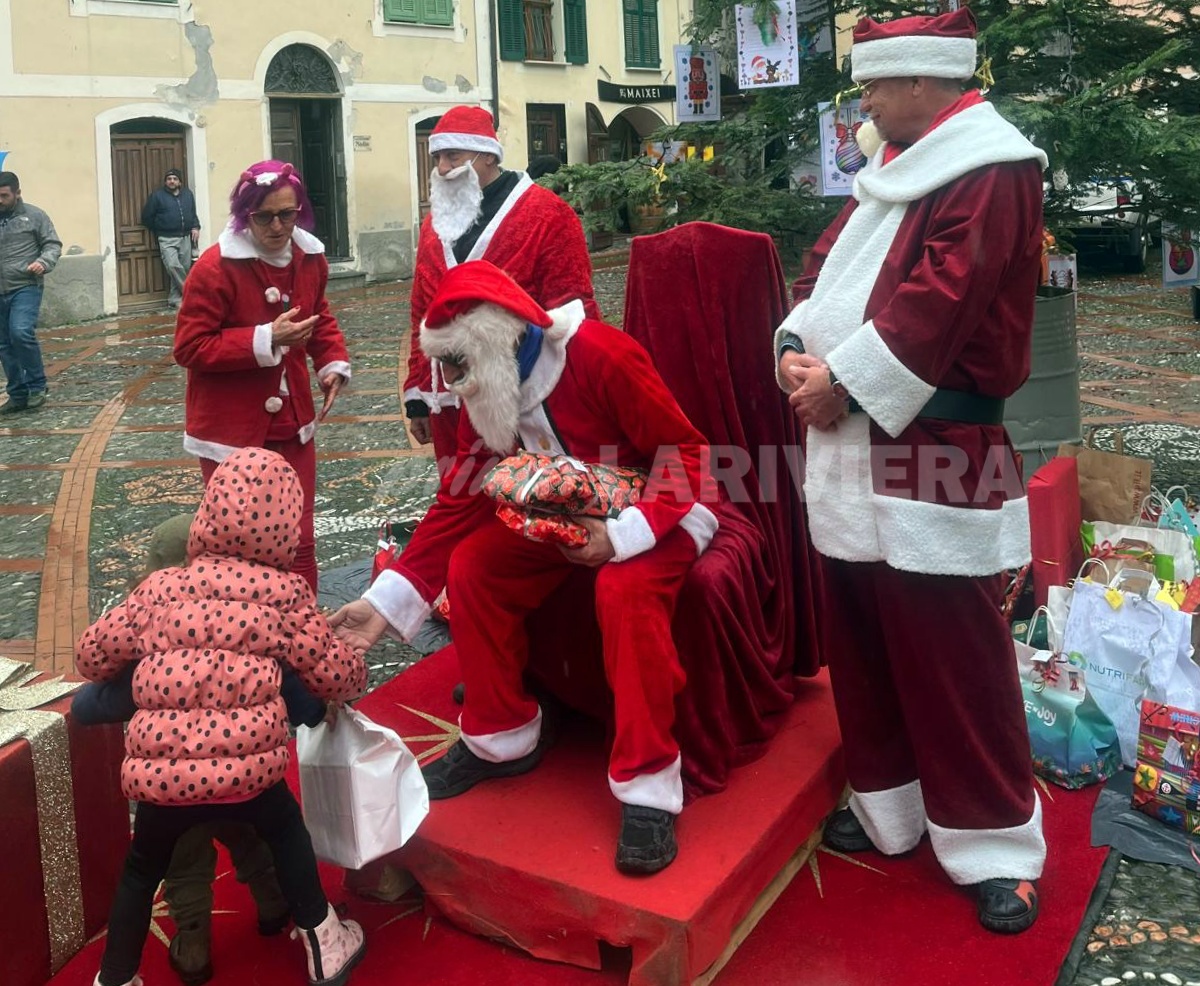 Il motoclub Jacques Maggioni, con Pro Loco e protezione civile di Dolceacqua, ha dato vita anche quest’anno, malgrado il meteo non del tutto favorevole, al consueto appuntamento del Babbo Natale in piazza Mauro, con distribuzione dei doni a tutti i bimbi presenti.