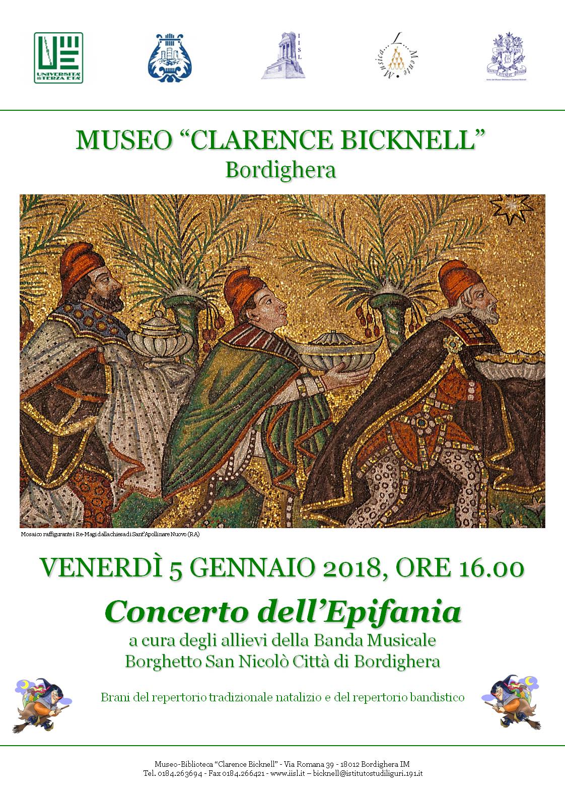 Venerdì 5 gennaio, alle ore 16, si terrà al Museo Clarence Bicknell di Bordighera il Concerto dell’Epifania con la Banda Musicale Borghetto San Nicolò Città di Bordighera.