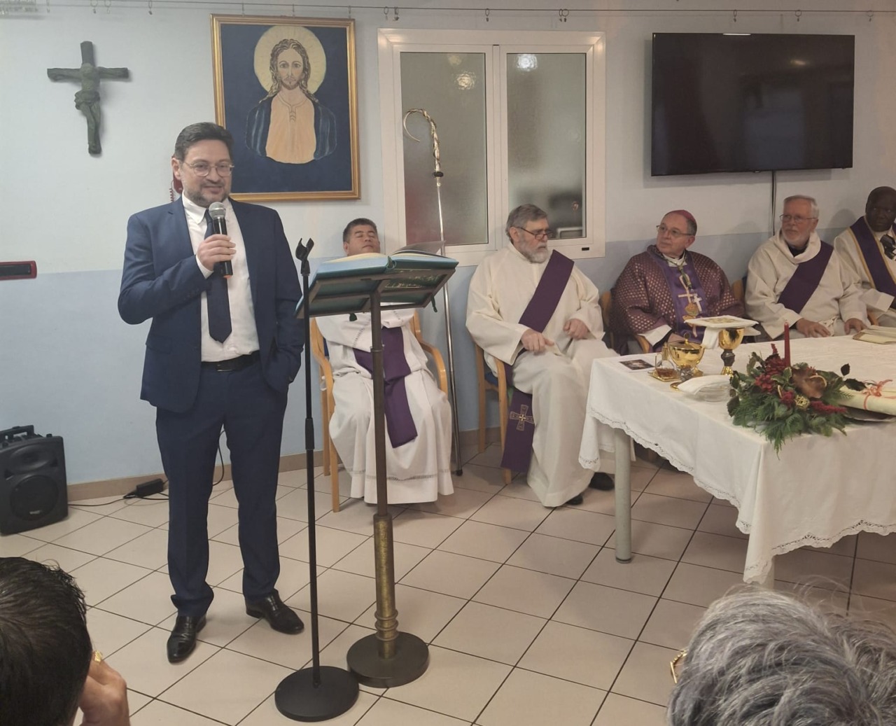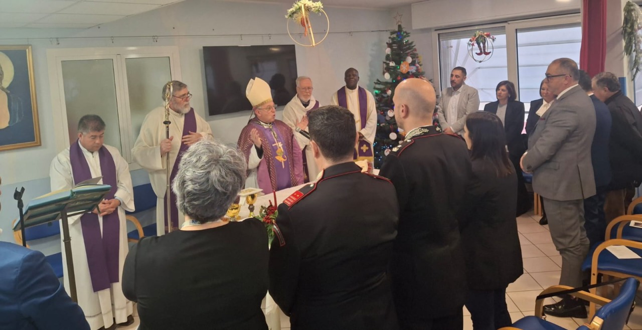 Lunedì scorso (22 dicembre) la residenza sanitaria assistita Casa Rachele, di Vallecrosia, ha ospitato un evento speciale e significativo: la messa in preparazione  di Natale celebrata dal vescovo diocesano Antonio Suetta, che ha portato un messaggio di speranza, conforto e comunità agli ospiti, al personale e a tutti gli intervenuti. Il vescovo è stato accolto dal presidente della Fondazione Rachele Zitomirski, Rocco Noto; dal direttore Mauro Vicenzi; dal presidente della Cooperativa, Zivia Diego Cricca, dagli ospiti, dai familiari, dai volontari Avo e dal personale.