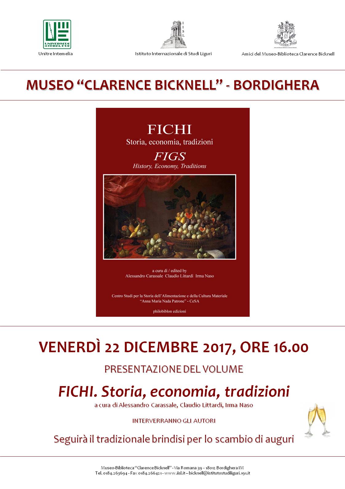 Venerdì 22 dicembre, alle ore 16, si terrà al Museo “Clarence Bicknell” di Bordighera il tradizionale incontro di fine anno per lo scambio degli auguri natalizi. Durante tale occasione verrà anche presentato un libro sulla storia dei fichi.