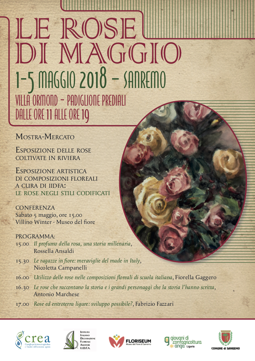 Saranno due le settimane dedicate alle rose coltivate in Riviera, grazie all’evento organizzato a Villa Ormond. Nel padiglione Prediali, verrà allestita una mostra-mercato, oltre a un’esposizione artistica di composizioni floreali a cura di IIFDA.