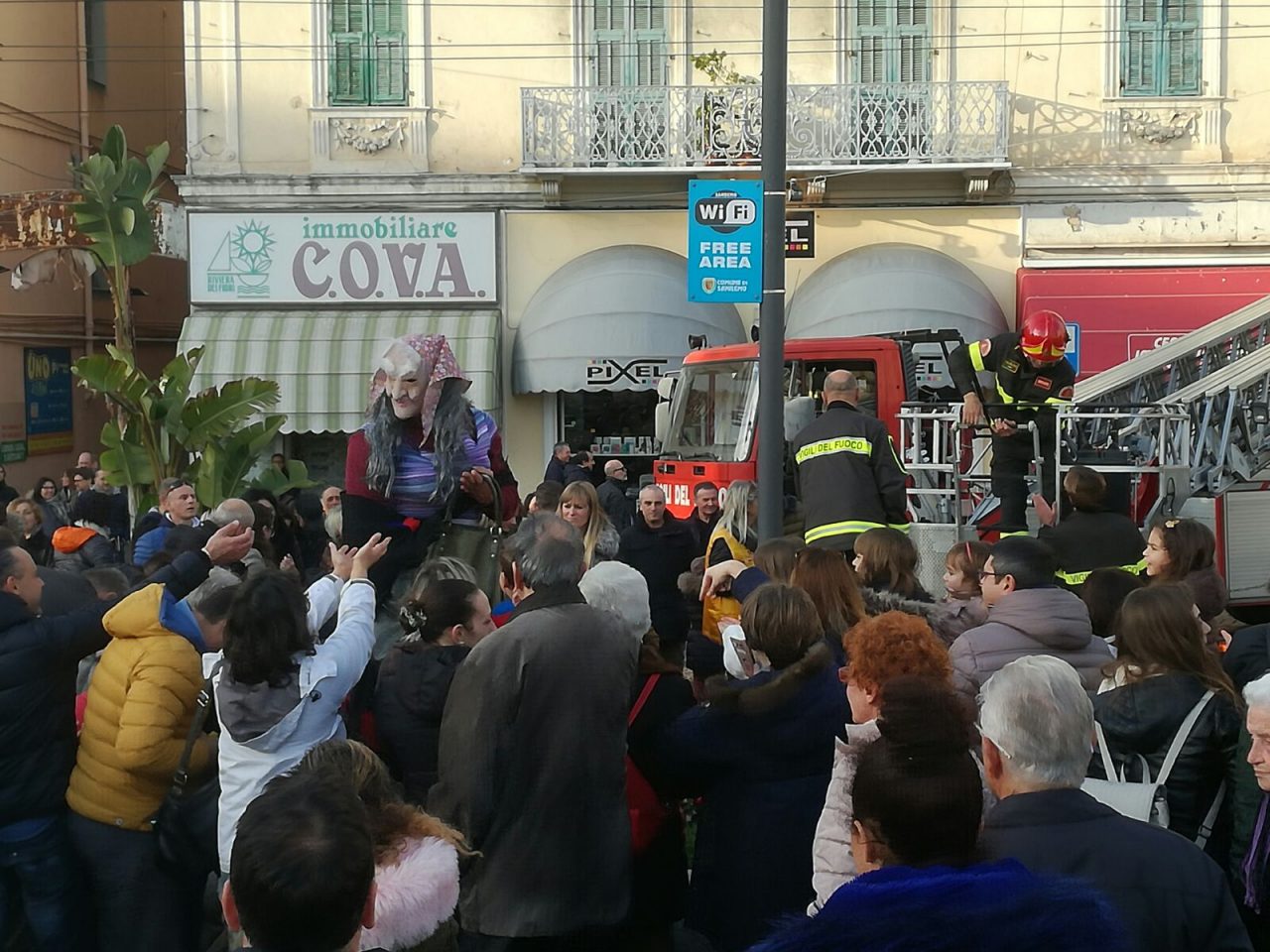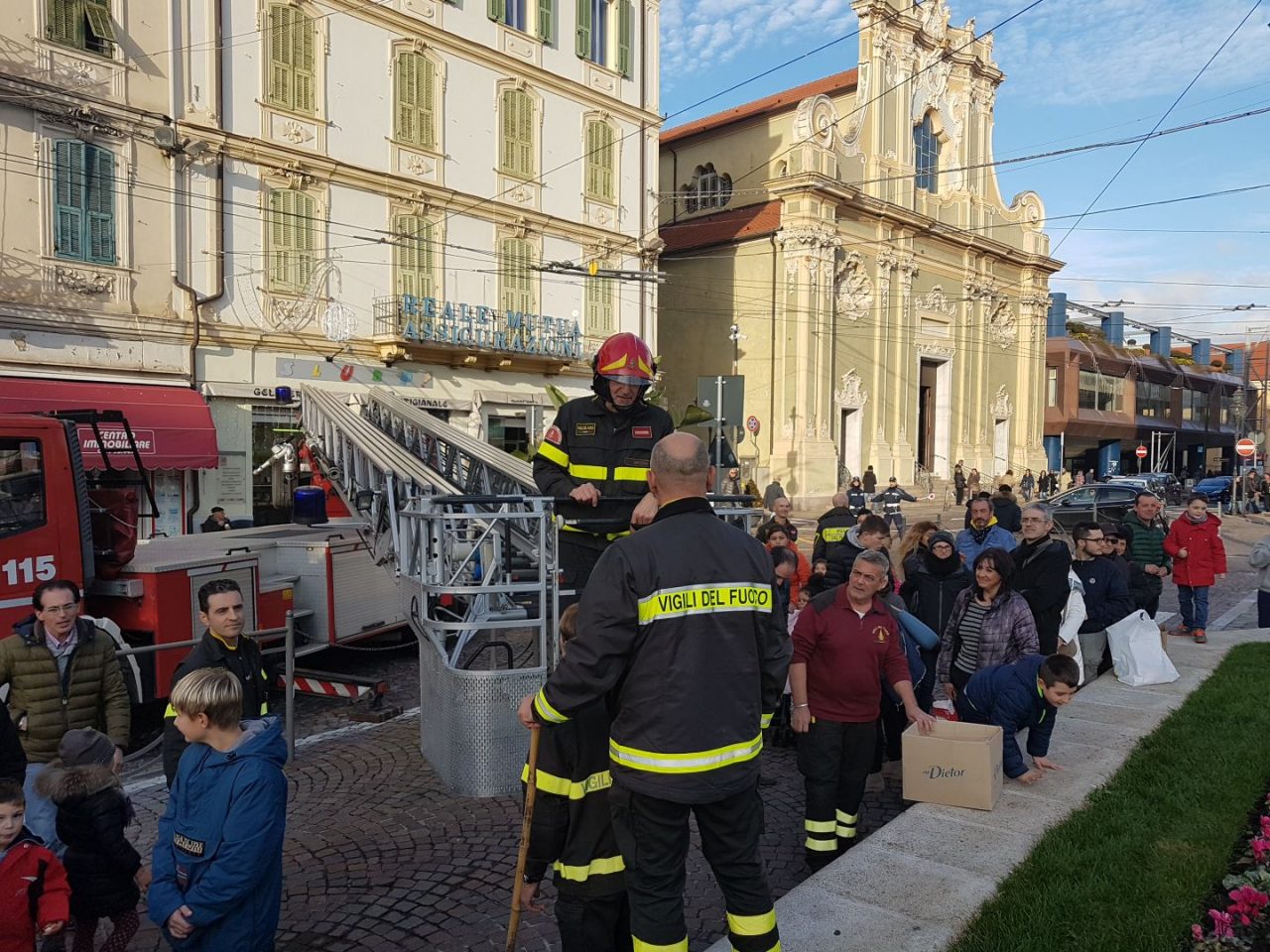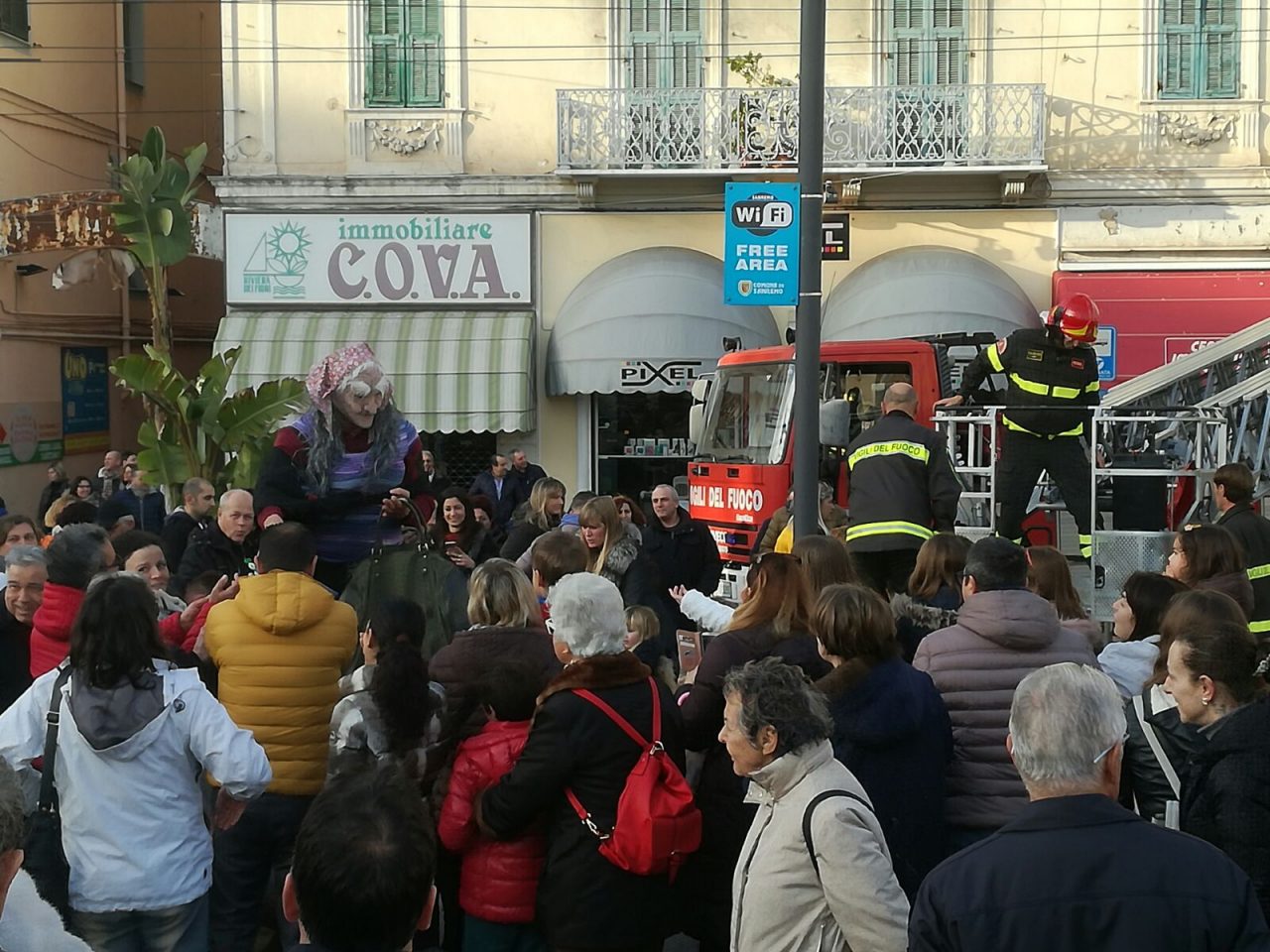 In Piazza Colombo, nel cuore di Sanremo, è arrivata una Befana molto particolare: la simpatica vecchina è arrivata, ovviamente carica di caramelle e dolciumi da distribuire ai bambini, scortata dai Vigili del Fuoco con uno dei loro mezzi, che ha affascinato il giovanissimo ( e meno) pubblico presente. Immancabile la rituale distribuzione di dolci, caramelle e cioccolato ai bambini e ai genitori presenti, ad opera anche dei Lions Matutia coadiuvati dalla Befana e dai pompieri in divisa. Mentre i colleghi di Imperia hanno organizzato un’iniziativa per portare il sorriso ai bambini di pediatria (leggi QUI)