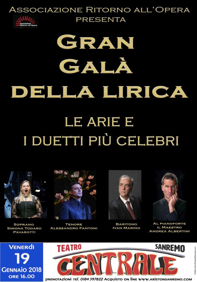 Venerdì 19 gennaio, torna al Teatro Centrale di Sanremo il Gran Gala della Lirica.