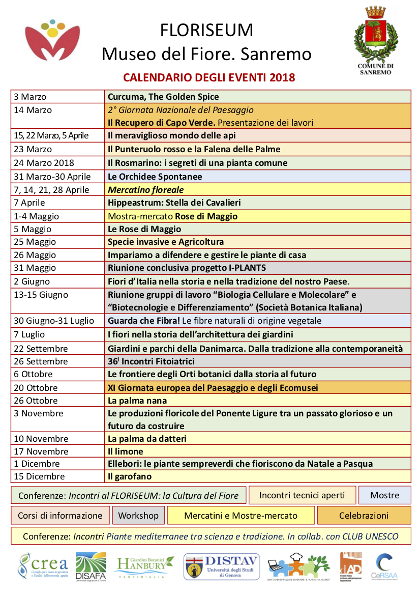 Sono tantissime le iniziative che si svolgeranno al Museo del Fiore di Sanremo fino alla fine dell’anno. Il programma spazia dalle conferenze ai workshop, dalle mostre agli incontri tecnici con professionisti del settore.