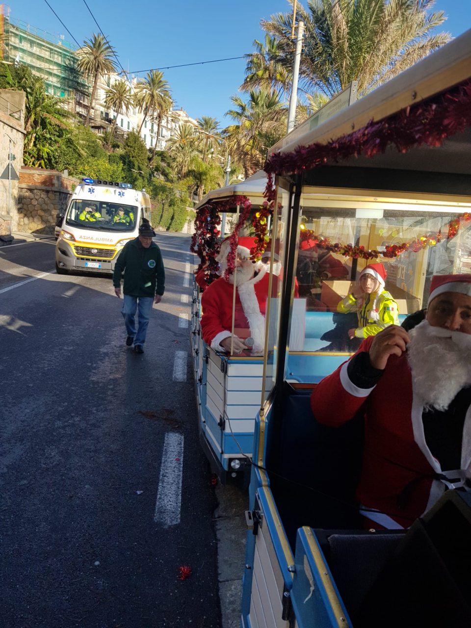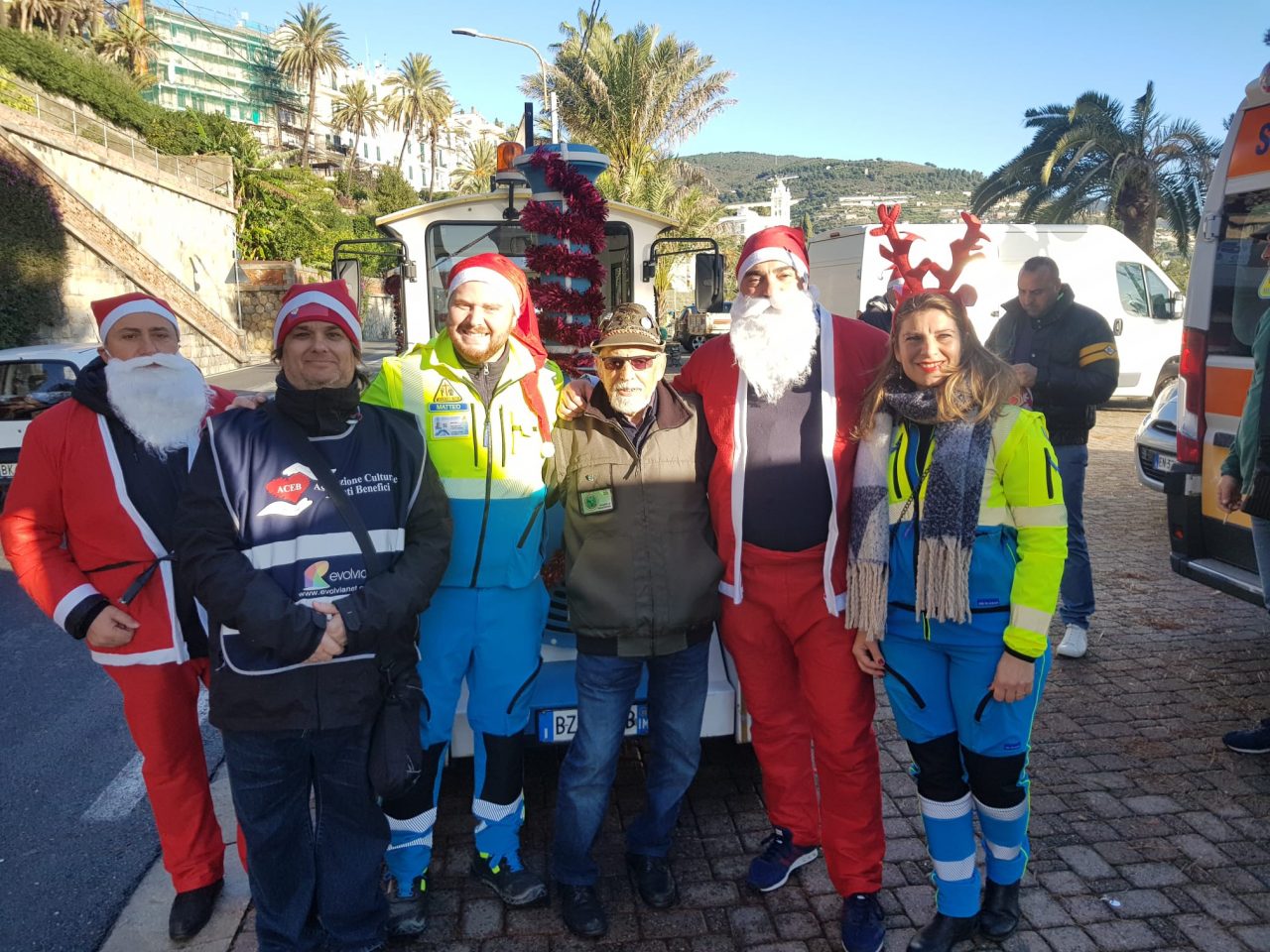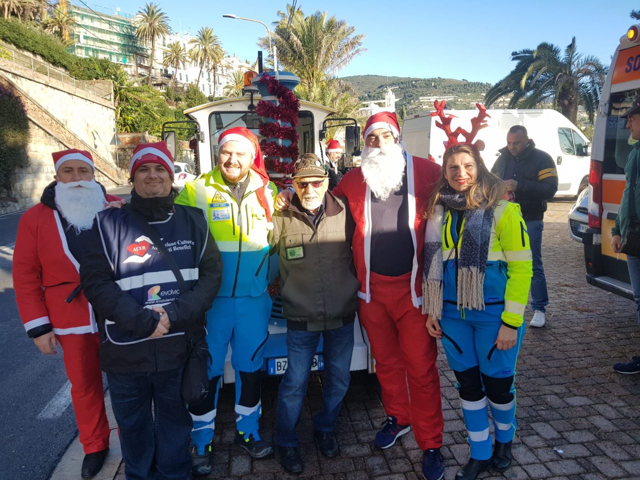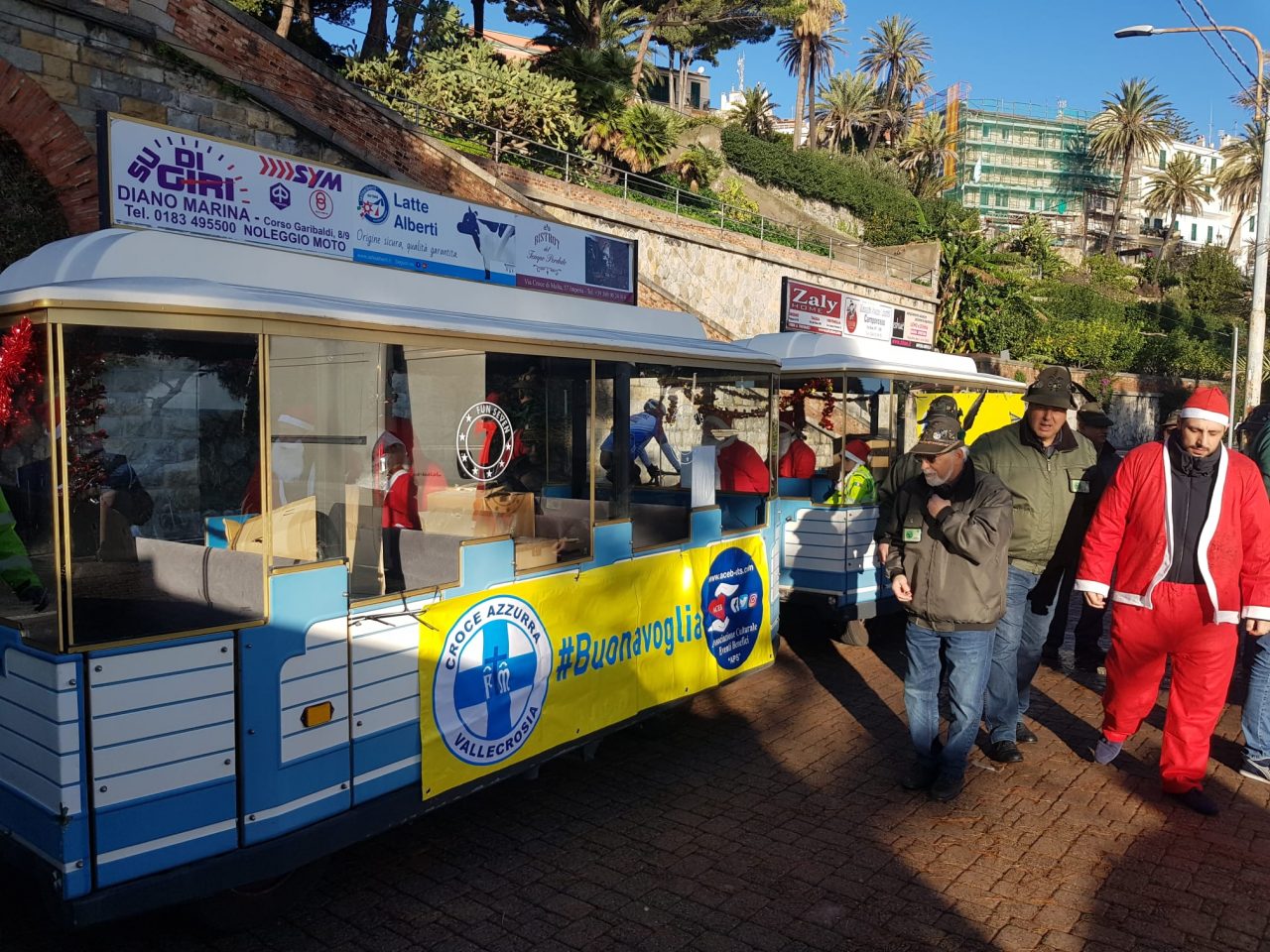 Successo record per la 1° edizione del “Babbo Natale Express”organizzato dalla Croce Azzurra Misericordia di Vallecrosia e ACEB Associazione Culturale Eventi Benefici di Camporosso con la straordinaria collaborazione della Pro Loco e del Gruppo Alpini di Vallecrosia.La manifestazione natalizia itinerante a bordo di un convoglio eccezionale con a bordo decine di Babbo Natale ha portato migliaia di doni ai più piccini facendo 4 fermate nei comuni di Bordighera, Ventimiglia, Vallecrosia e Camporosso.