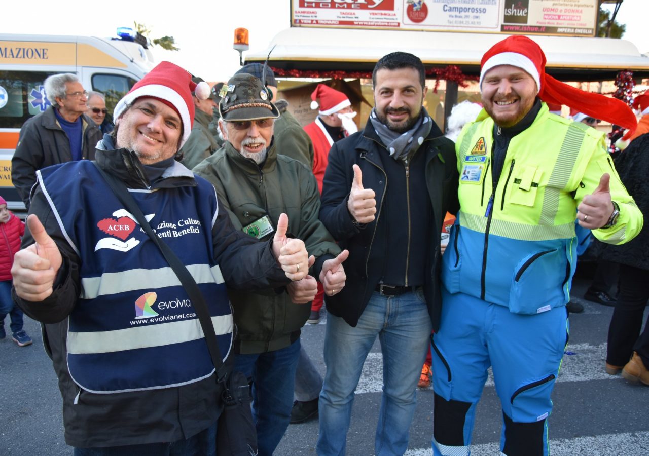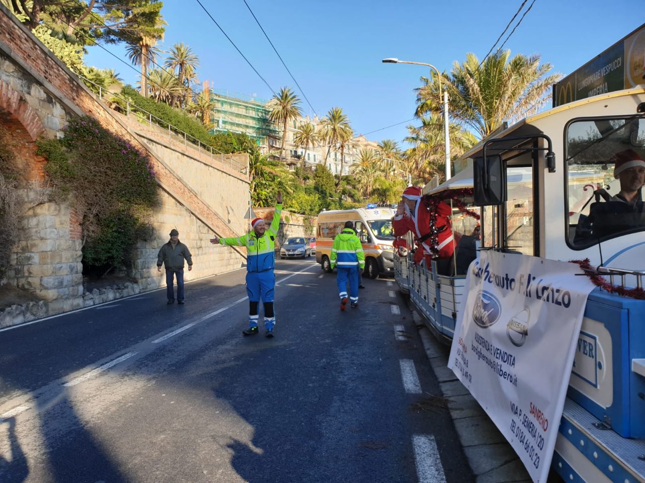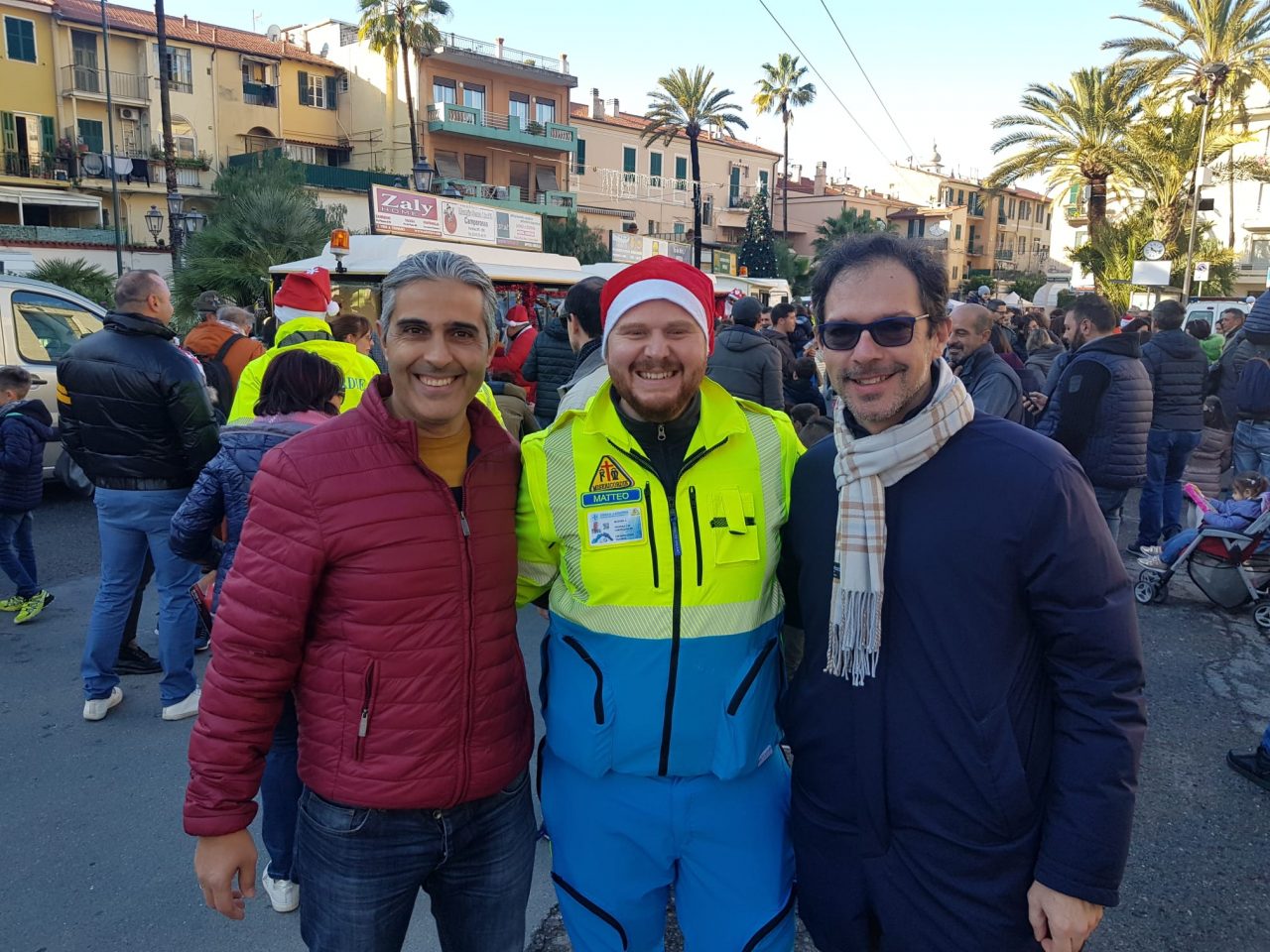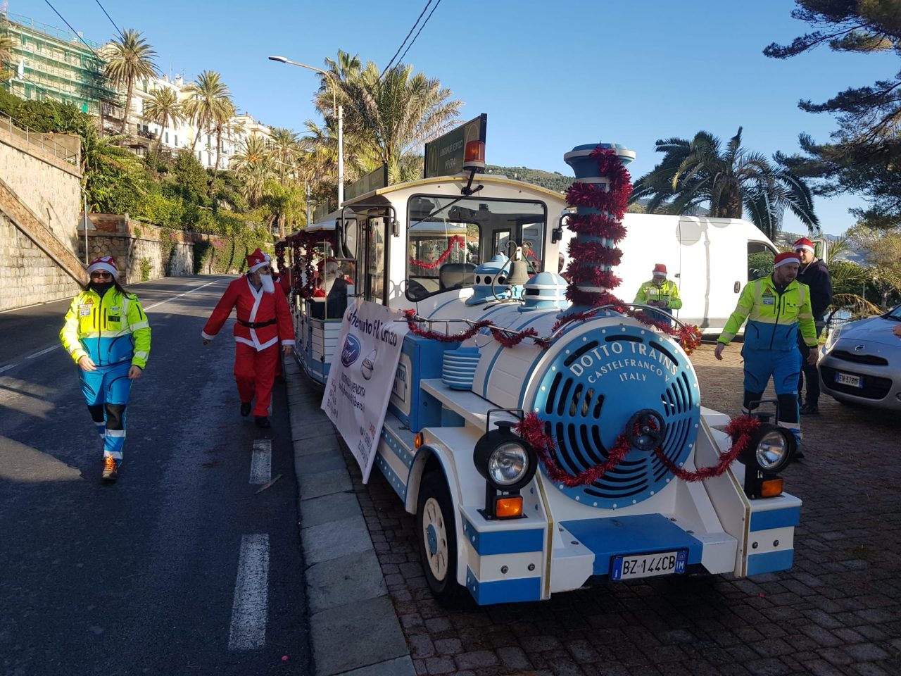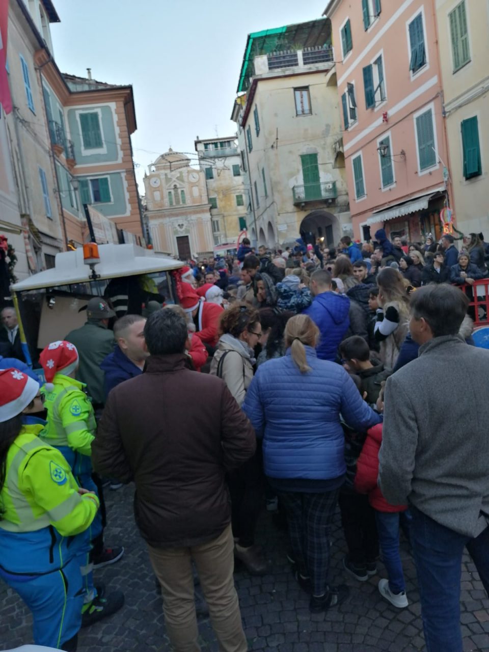 Successo record per la 1° edizione del “Babbo Natale Express”organizzato dalla Croce Azzurra Misericordia di Vallecrosia e ACEB Associazione Culturale Eventi Benefici di Camporosso con la straordinaria collaborazione della Pro Loco e del Gruppo Alpini di Vallecrosia.La manifestazione natalizia itinerante a bordo di un convoglio eccezionale con a bordo decine di Babbo Natale ha portato migliaia di doni ai più piccini facendo 4 fermate nei comuni di Bordighera, Ventimiglia, Vallecrosia e Camporosso.