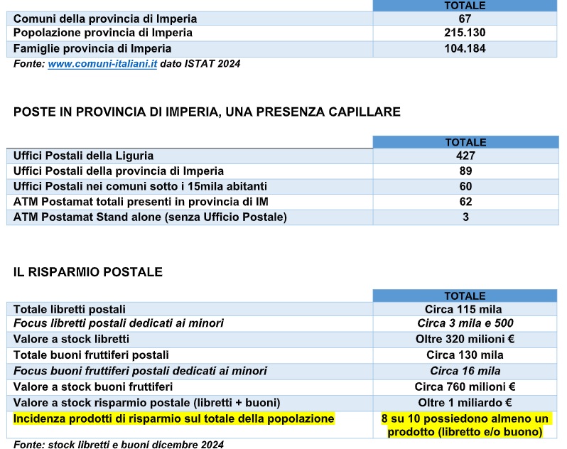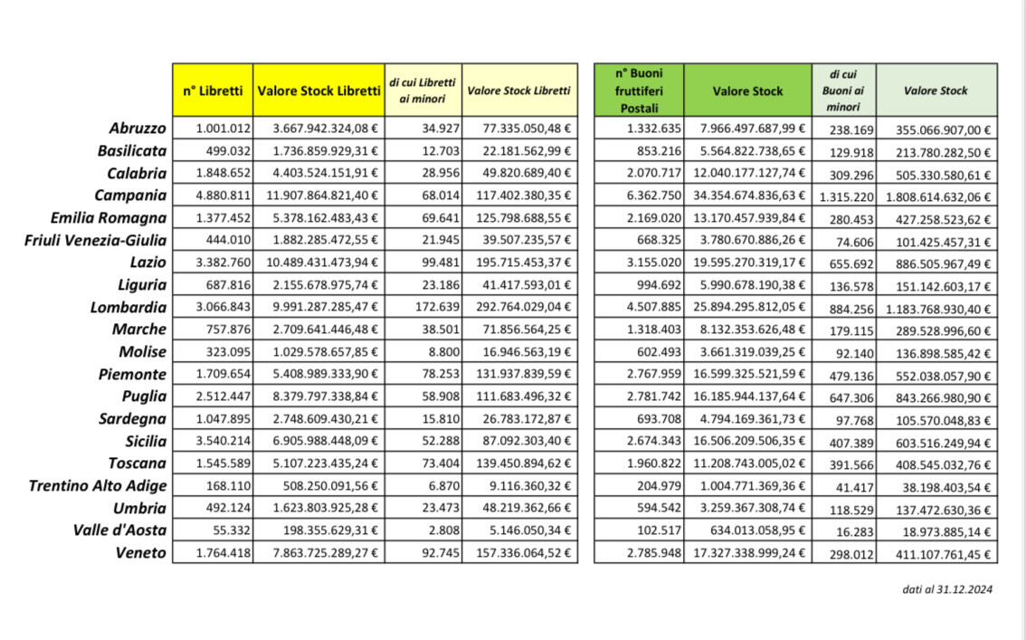 totale in Liguria, infatti, i Buoni Postali sono oltre 1 milione e i Libretti sono circa 700 mila.