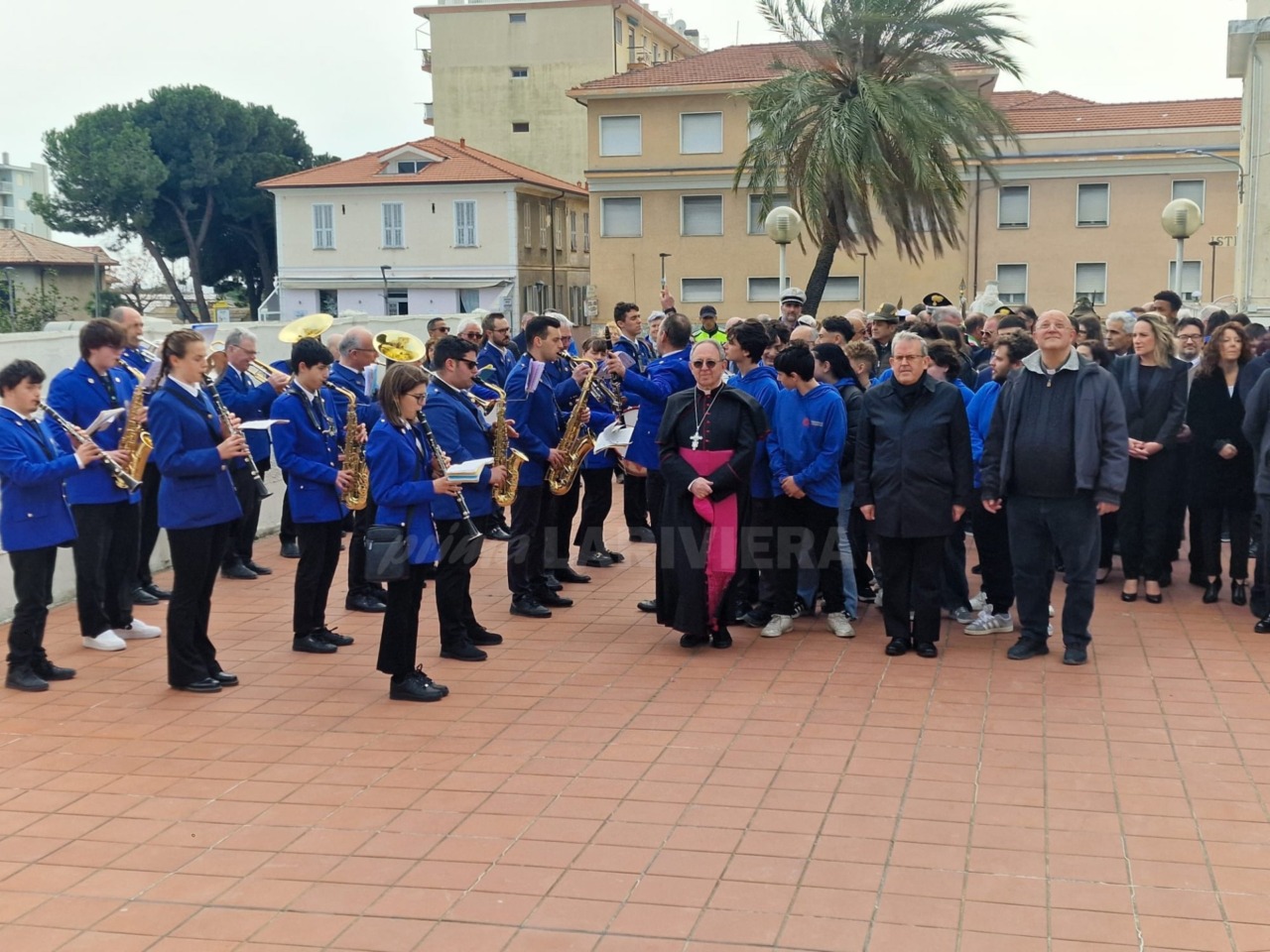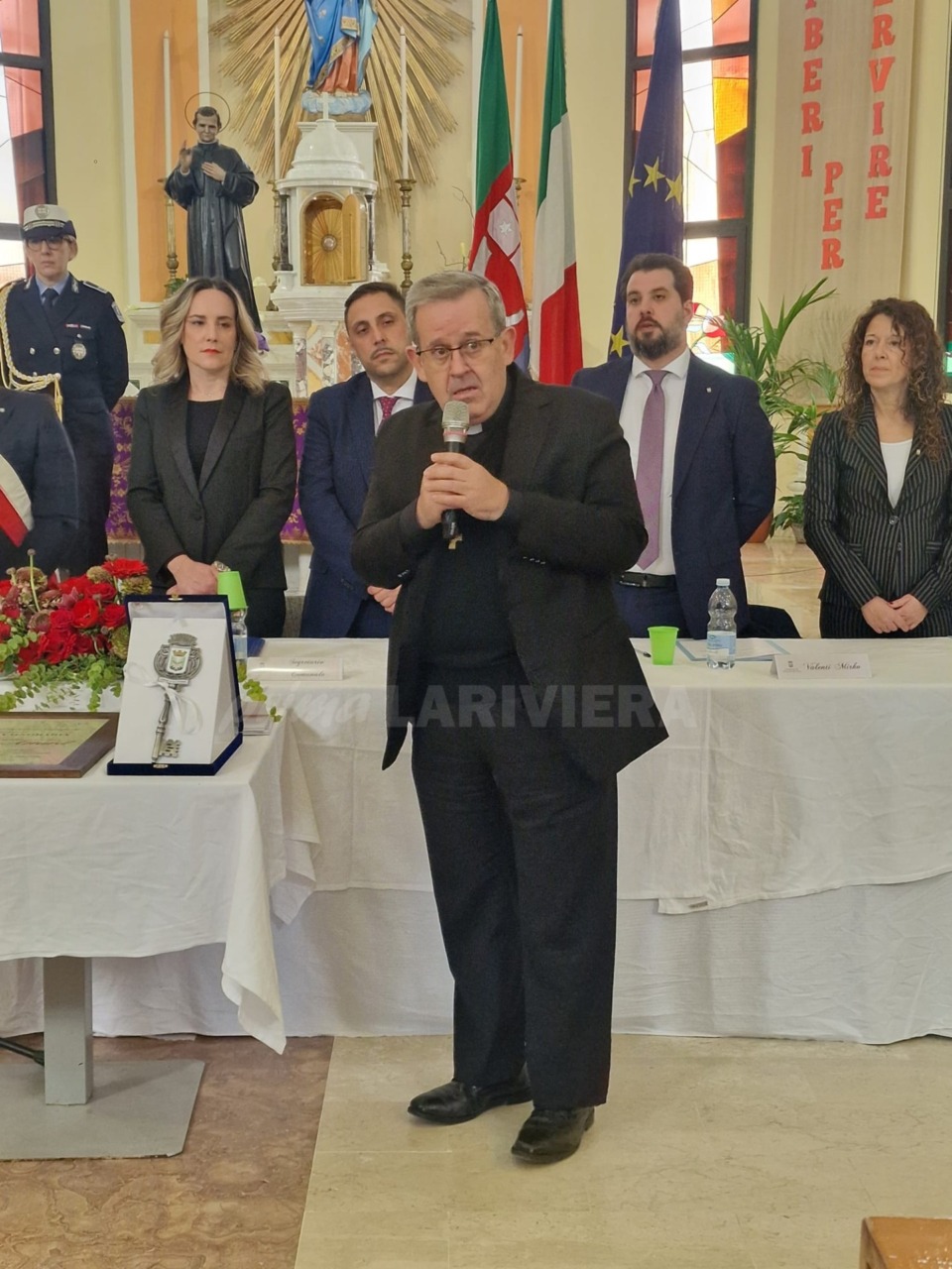 Alla cerimonia, che avrebbe dovuto tenersi all’aperto, ma a causa del forte vento è stata autorizzata dal vescovo diocesano Antonio Suetta, all’interno della chiesa, erano anche presenti sedici (su diciotto) sindaci del comprensorio Intemelio.