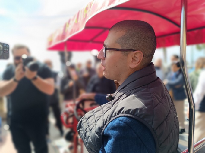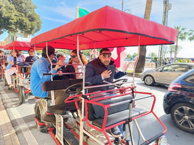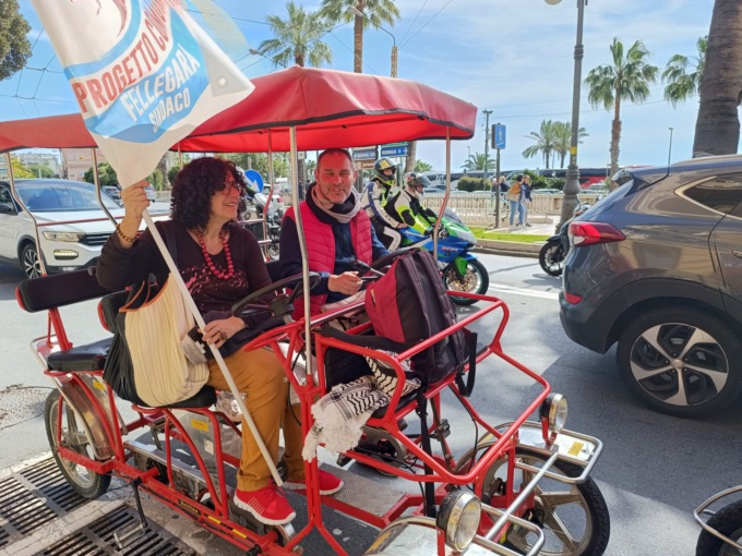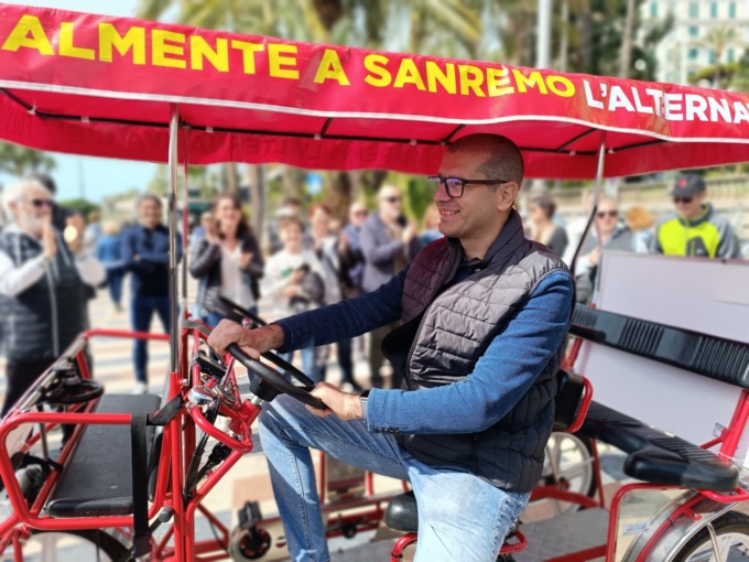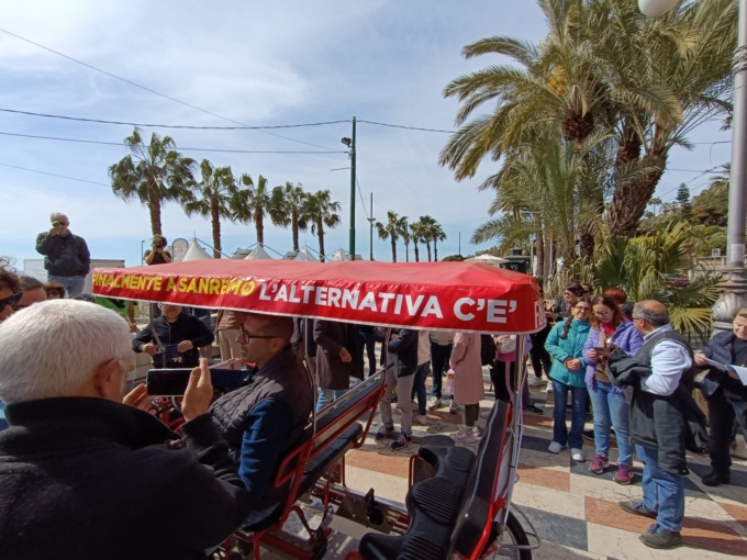 Sorpresa: il point elettorale di Fulvio Fellegara, candidato per il centro sinistra alle amministrative sanremesi… è un risciò. Accolto da decine di sostenitori in corso imperatrice, l’aspirante sindaco ha presentato il point mobile ai cittadini.