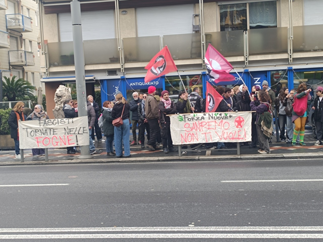 Vasto dispiegamento di forze dell’ordine per la doppia manifestazione a Sanremo. Sotto alle finestre di Palazzo Bellevue, Forza Nuova a sostegno della Campana dei Bambini non Nati del vescovo Antonio Suetta, lungo corso Cavallotti, invece, i collettivi studenteschi che protestano contro la presenza nella Città dei Fiori del movimento neofascista.