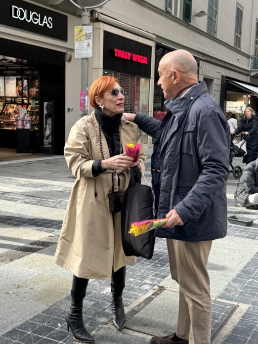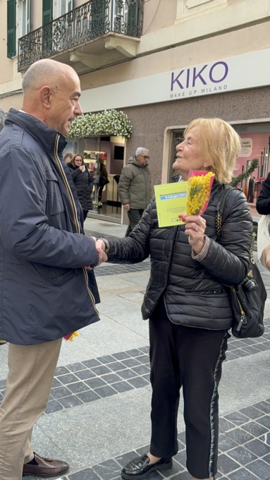 In occasione della Giornata internazionale dei diritti delle donne, Alessandro Mager e i candidati delle liste civiche che lo sostengono si sono radunati oggi in via Matteotti per distribuire rametti di mimosa – simbolo di forza, tenacia e speranza – a tutte le donne di Sanremo.