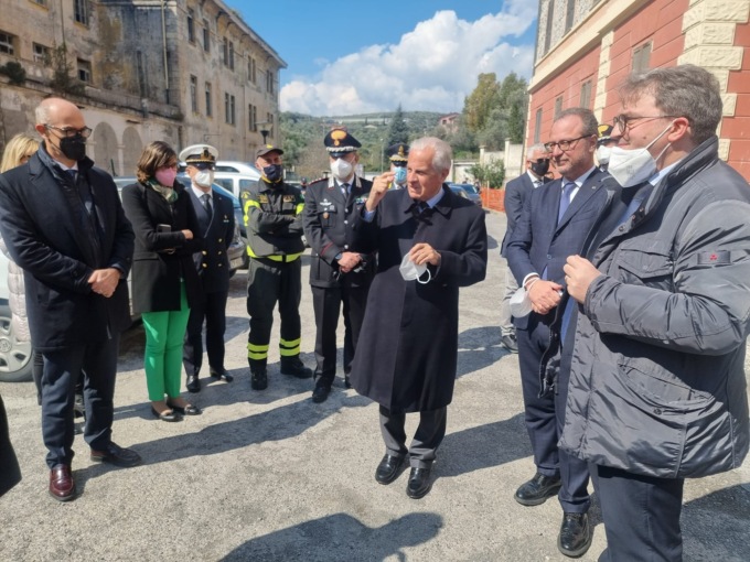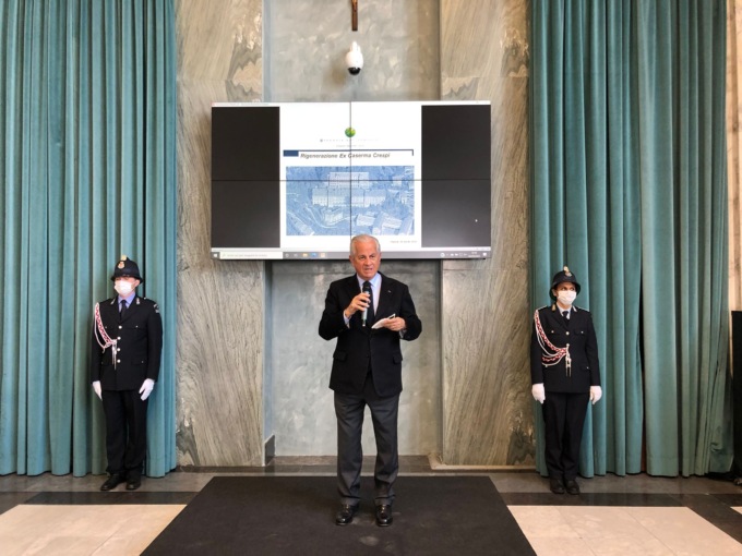 E’ stato effettuato, stamani, dal sindaco di Imperia Claudio Scajola, alla presenza del direttore regionale dell’Agenzia del Demanio, Giovanni Zito; del sottosegretario alla difesa, Giorgio Mulè e delle massime autorità provinciali, un sopralluogo nell’ex Caserma Crespi, un edificio costruito negli anni Trenta del secolo scorso e dismesso nel 1994, dopo che è stata tolta la leva obbligatoria, che grazie a un finanziamenti pubblico di circa trenta milioni sarà trasformata in un polo amministrativo, che ospiterà, tra l’altro, la nuova caserma dei carabinieri, l’Agenzia delle Entrate, l’Archivio di Stato, la Motorizzazione e la sede della Commissione Tributaria. Al sopralluogo è seguita una presentazione del progetto in Comune.