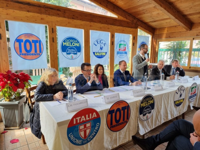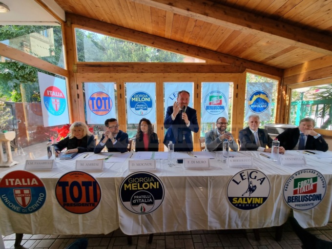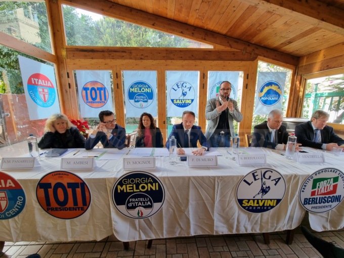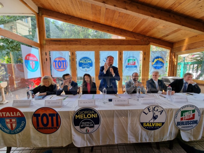 Siamo qui a confermare il nostro sostegno a Flavio Di Muro. Questo è il modello vincente, lo dimostra il governo regionale ormai da dieci anni. Il centrodestra unito per una candidatura di buon governo. Era importante convergere su un candidato sindaco che fosse in grado poi di farlo il sindaco, perché questa città ha bisogno di persone capaci ad amministrare, ha bisogno di risollevarsi. Ha bisogno di persone giovani, che hanno tanta voglia di mettersi in moto”.