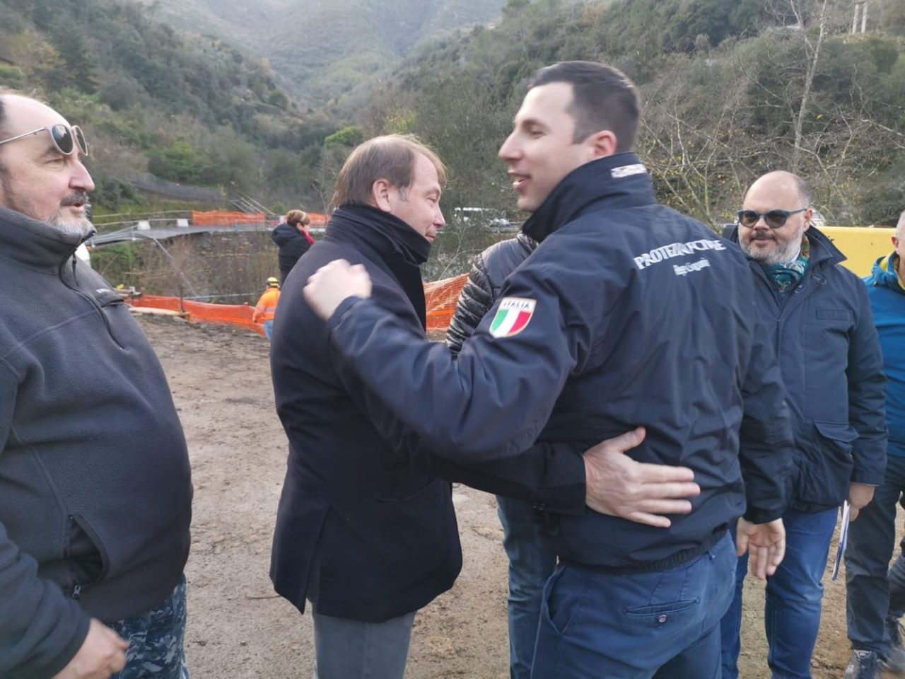 Ho trovato una situazione dove tutti stanno facendo quello che ci siamo prefissati e che i sindaci avevano chiesto a gran voce come avevano chiesto i cittadini che sono ancora purtroppo isolati. Lavoreremo prima per il posizionamento della gru, il ponte verrà montato poco più in basso, e poi verrà traslato e trascinato fino al suo posizionamento.