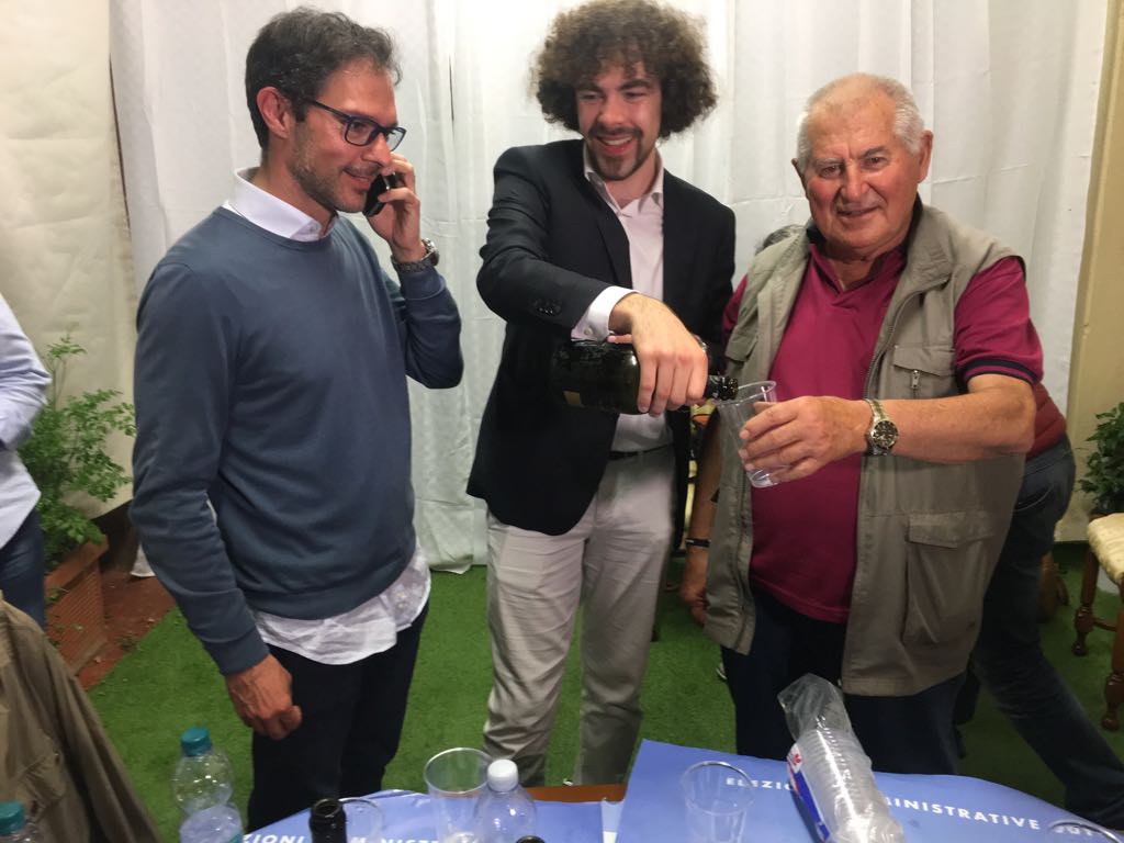 Iniziano i primi brindisi, in attesa della conferma definitiva dei dati ancora in fase di aggiornamento sul sito del Ministero. Vittorio Ingenito sta festeggiando con i suoi, all’interno del point elettorali di Bordighera.