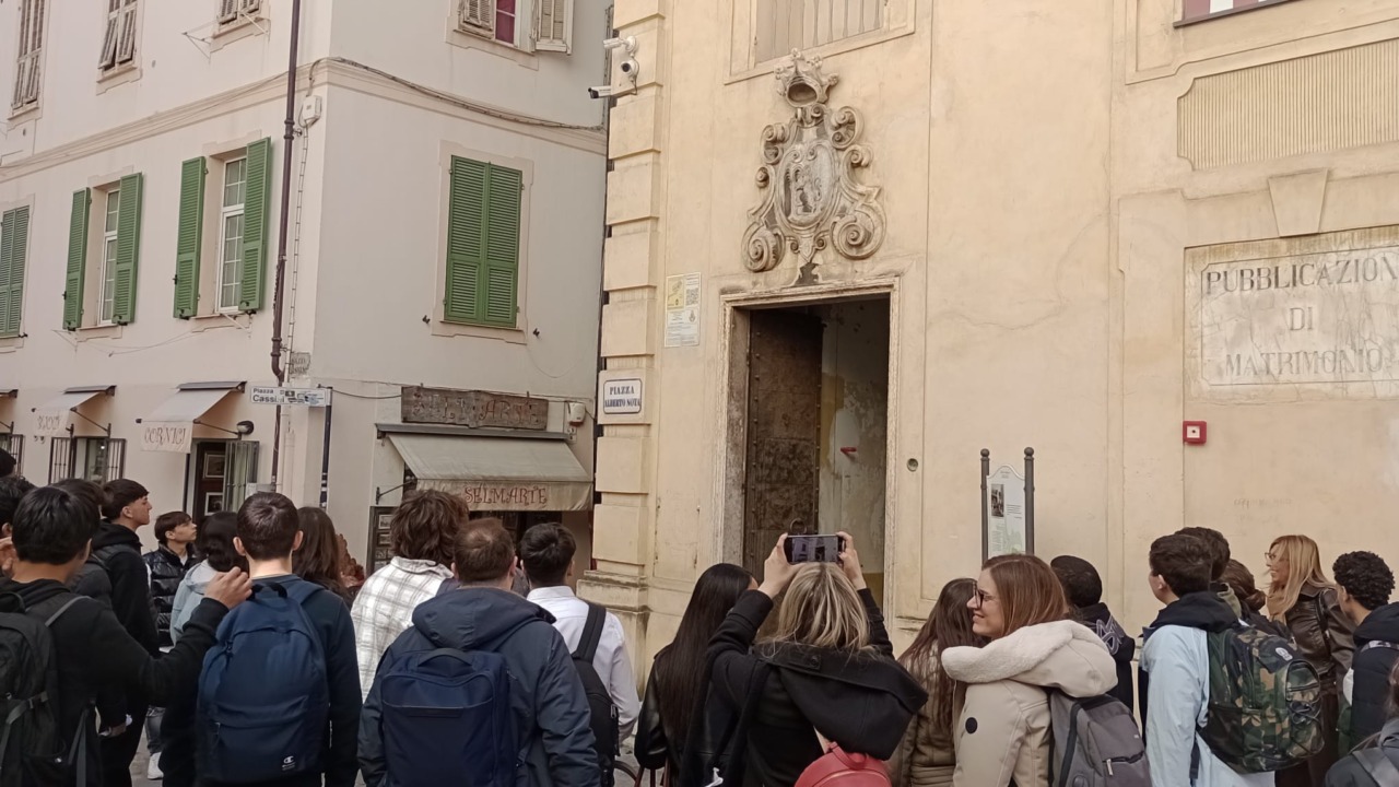 A seguire, gli studenti del corso AFM hanno guidato i coetanei in un itinerario cittadino nei luoghi più significativi legati allo scrittore, assumendo il ruolo di “ciceroni per un giorno”. Il percorso ha unito in un’unica esperienza il centro storico della Pigna e i luoghi simbolo di Sanremo, da Piazza Bresca a Corso Imperatrice, dal Casinò al Teatro Centrale, mettendo in relazione diretta gli spazi della città con l’immaginario letterario calviniano.
