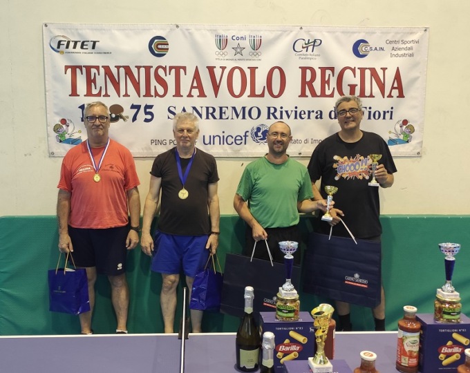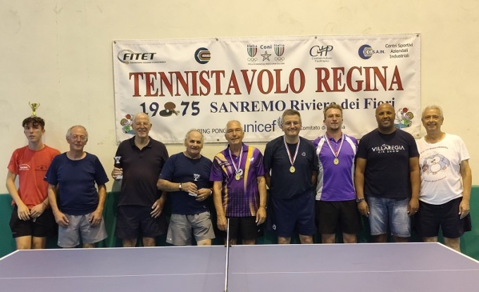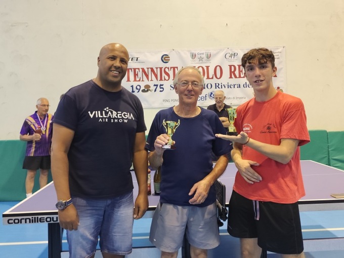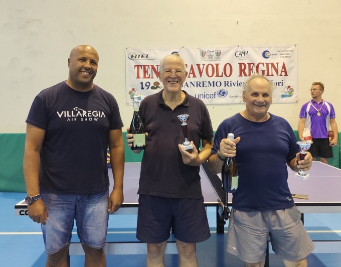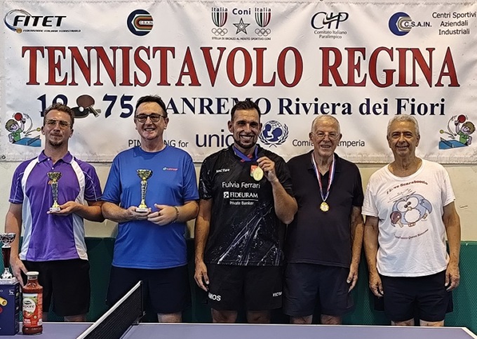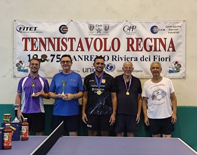 Singolare Veterani Open Misto = 1°) Daniele Vianello del T.T. Romagnano NO – 2°) Ron Rodriguez Carlos dell’Athletic GE – 3°) David Marani del GSTT Bordighera – 4°) Roberto Giraudo del T.T. Regina Sanremo – 5°/5° a pari merito) Alessio Carozzi di Nerviano e Stefano Beverini di Genova.