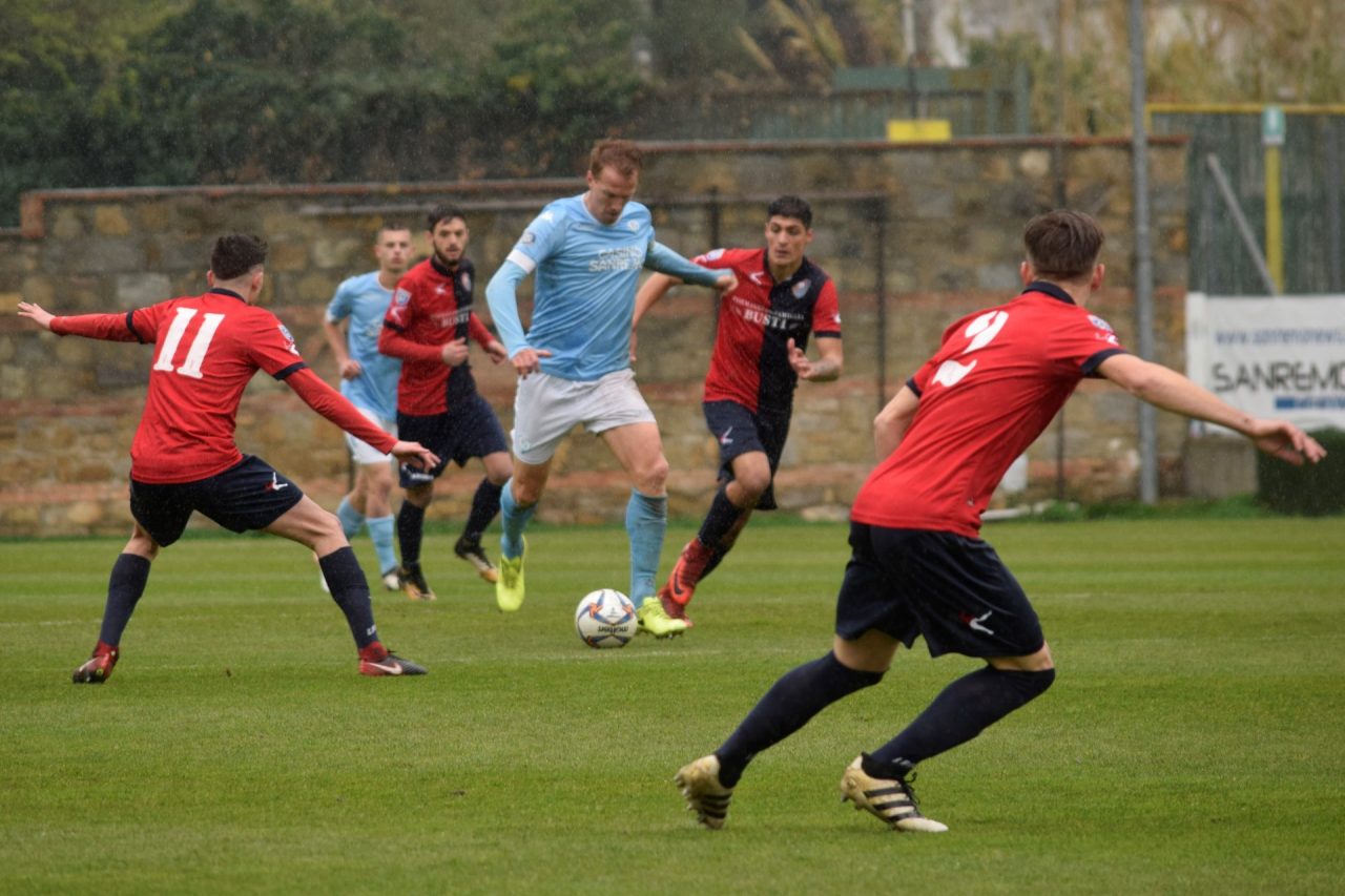 La Sanremese si riversa in attacco alla ricerca del pari. Al 52’ Costantini ci prova da fuori, palla alta.
