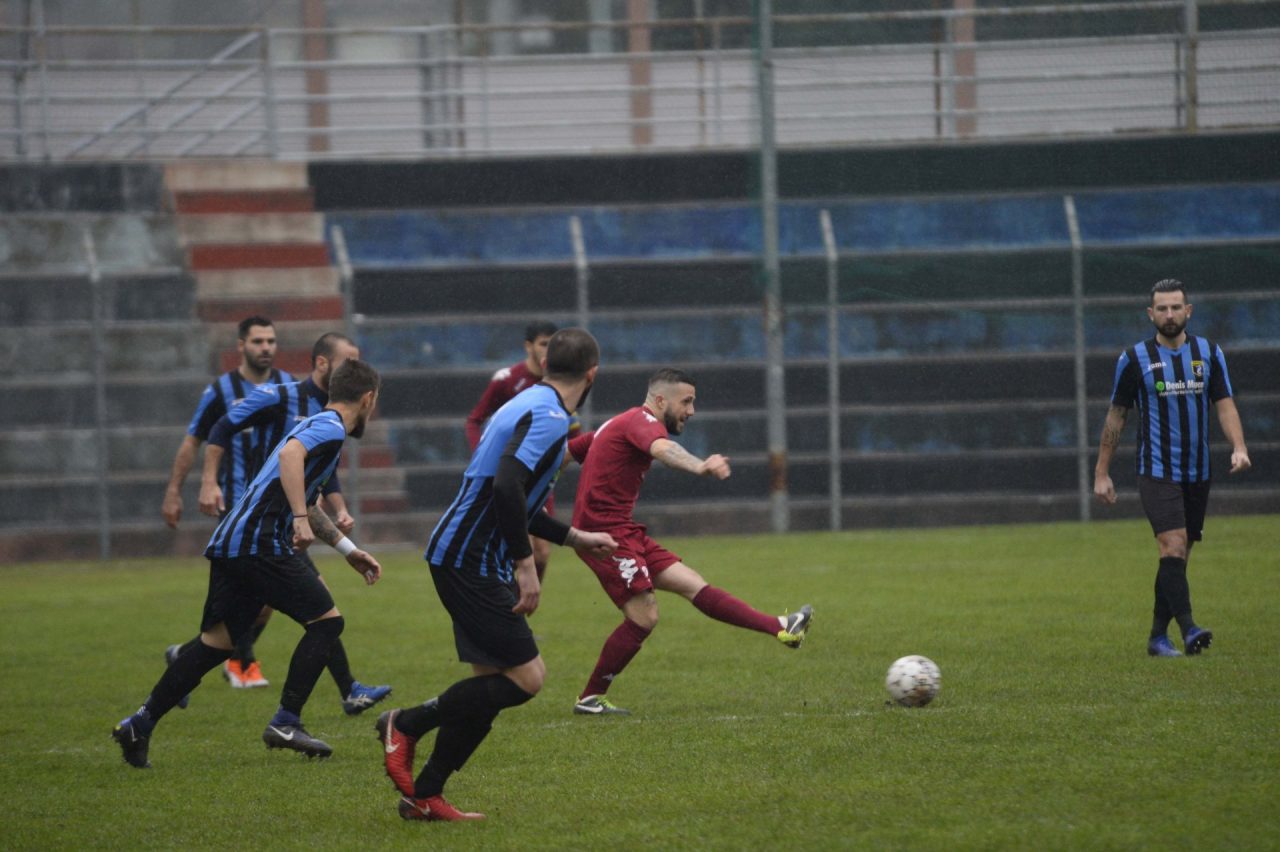 La quattordicesima e ultima partita casalinga del 2018 vede l’Imperia affrontare il Ventimiglia sul campo dello stadio “Nino Ciccione” con un manto piuttosto pesante per via della pioggia che ha accompagnato la partita per intero. Comincia subito il Ventimiglia al 5′ con Fraticelli che su suggerimento di Musumarra prova la girata al volo ma colpisce male la palla che termina a fondo campo. Al 14′ primo tiro dell’Imperia con Costantini che però trova sulla sua strada Allegro che devia la conclusione sopra la traversa. Al 17′ episodio molto dubbio su Fabio Laera che viene atterrato in area di rigore dalla retroguardia frontaliera ma l’arbitro il sig. Guglielmo Noce della sezione di Genova non vede nessuna irregolarità. Al 18′ è la volta di Castagna che prova un tiro cross ma non trova la deviazione vincente. Al 22′ prova il Ventimiglia con Allegro ma la sua conclusione è alta e non reca nessun pericolo alla porta difesa da Trucco. Al 33′ per l’Imperia prova Laera che cerca la deviazione vincente di testa ma la sua conclusione viene deviata da Scognamiglio in calcio d’angolo. Al 36′ bella conclusione in semirovesciata di Cavallone ma Scognamiglio para il tiro troppo centrale. Al 40′ occasione per l’Imperia sui piedi di Costantini che prova il tiro da fuori area ma finisce di pochissimo fuori.