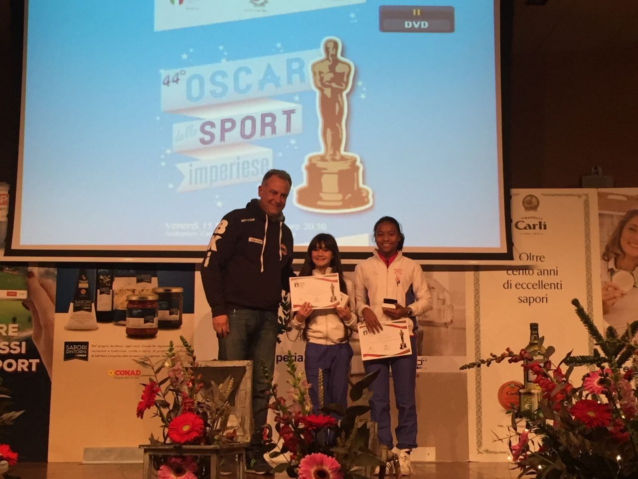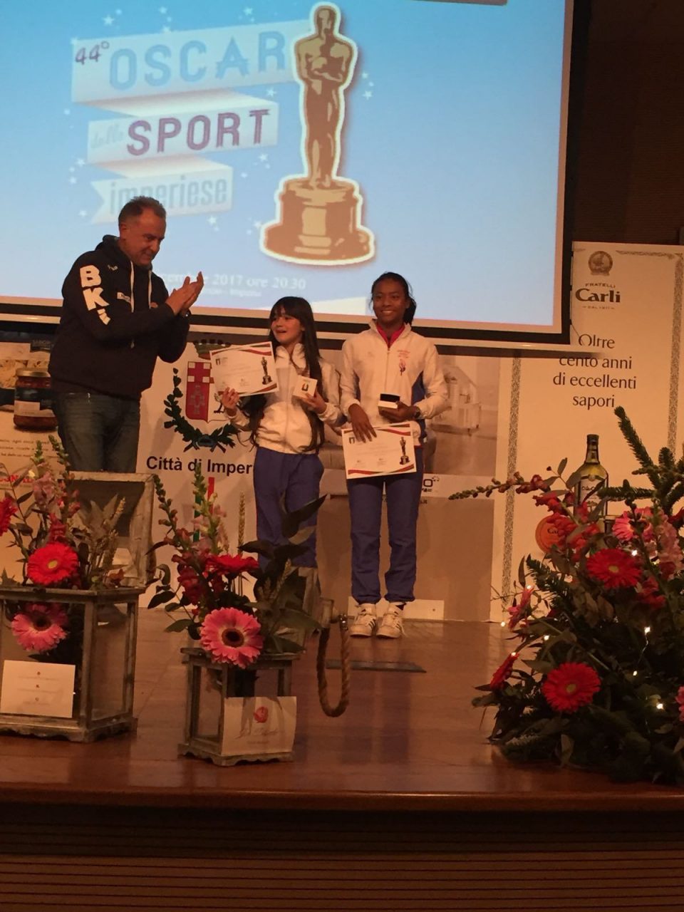Passando alle cerimonie, la ginnastica è stata tra le discipline premiate alla 44ª edizione degli Oscar dello Sport, manifestazione promossa dal Coni Provinciale che quest’anno vedeva riconosciuti a livello di premiazione solo i podi nazionali. Salgono sul palco dell’Auditorium della Camera di Commercio di Imperia la Campionessa Italiana Junior Sima Papone e il Bronzo Nazionale Allieve Alice Eremita, entrambe nella disciplina Olimpica del Trampolino Elastico.