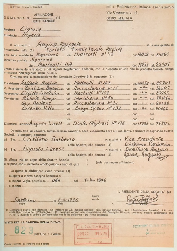 Tante sarebbero le storie da raccontare, le esperienze, i sentimenti vissuti in questo lungo tempo ma lasciamo ai posteri l’eventuale continuità del “Tennistavolo Regina Sanremo Riviera Fiori Liguria”.