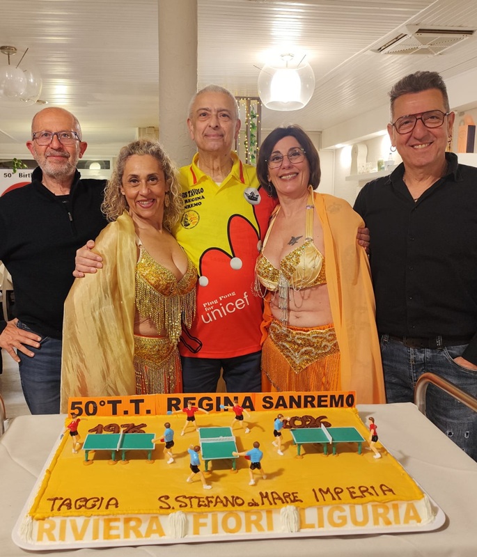 Grande soddisfazione per l’Accademia Pongistica della “A.S.D. Tennistavolo Regina Sanremo” con Taggia, Imperia e Santo Stefano al Mare che nei giorni scorsi ha festeggiato il 50° Compleanno presso il Ristorante Lido Fontana di Carlo La Bozzetta di Sanremo. “In apertura della serata, con un raccoglimento di un minuto, sono stati ricordati i soci ed atleti che oggi non sono più in vita e nominarli tutti non è stato necessario in quanto ognuno di loro riposa in pace nei nostri cuori” le parole di Regina.