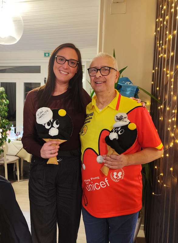 Erano presenti pure le mascotte “Polpo Ping” e “Racchettone Pong” che hanno fatto sorridere i 70 commensali presenti all’evento.
