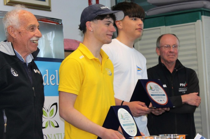 Avvincente la sfida tra i due equipaggi che si sono contesi l’oro, i quali hanno terminato le prove con un solo punto di distacco. Il confronto all’ultima boa ha dunque visto imporsi le “zanzare” del Lago di Viverone Arturo ed Enea Beltrando (A.V.S.D. Nord Ovest), argento per i toscani Gabriele Corsi e Giulia Galletti (L.N.I. Follonica), anche primo equipaggio “misto” e bronzo per i compagni di scuderia Matteo Gorni e Raffaello Spadini (L.N.I. Follonica), anche primo equipaggio “Under 20”.
