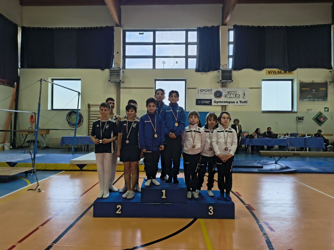 Nella gara allievi LB gradino più alto del podio ottenuto dai ginnasti Emanuele Norberti, Pietro Serini e Samuele Lombardo che con i loro esercizi al corpo libero, volteggio, parallele pari, sbarra e minitrampolino hanno totalizzato 136,300 punti . Bene anche la squadra allievi LA che , con i ginnasti Andrea Driza, Jacopo Romeo e Gabriele Norberti ottiene un 5 posto in una gara combattuta , col punteggio di 98,300 a soli 0,550 centesimi dal podio .Molto soddisfatto il tecnico Damiano Giunta al lavoro per preparare con questi atleti, la partecipazione alle Finali Nazionali PGS in programma a Lignano Sabbiadoro dal 25 al 27 aprile.