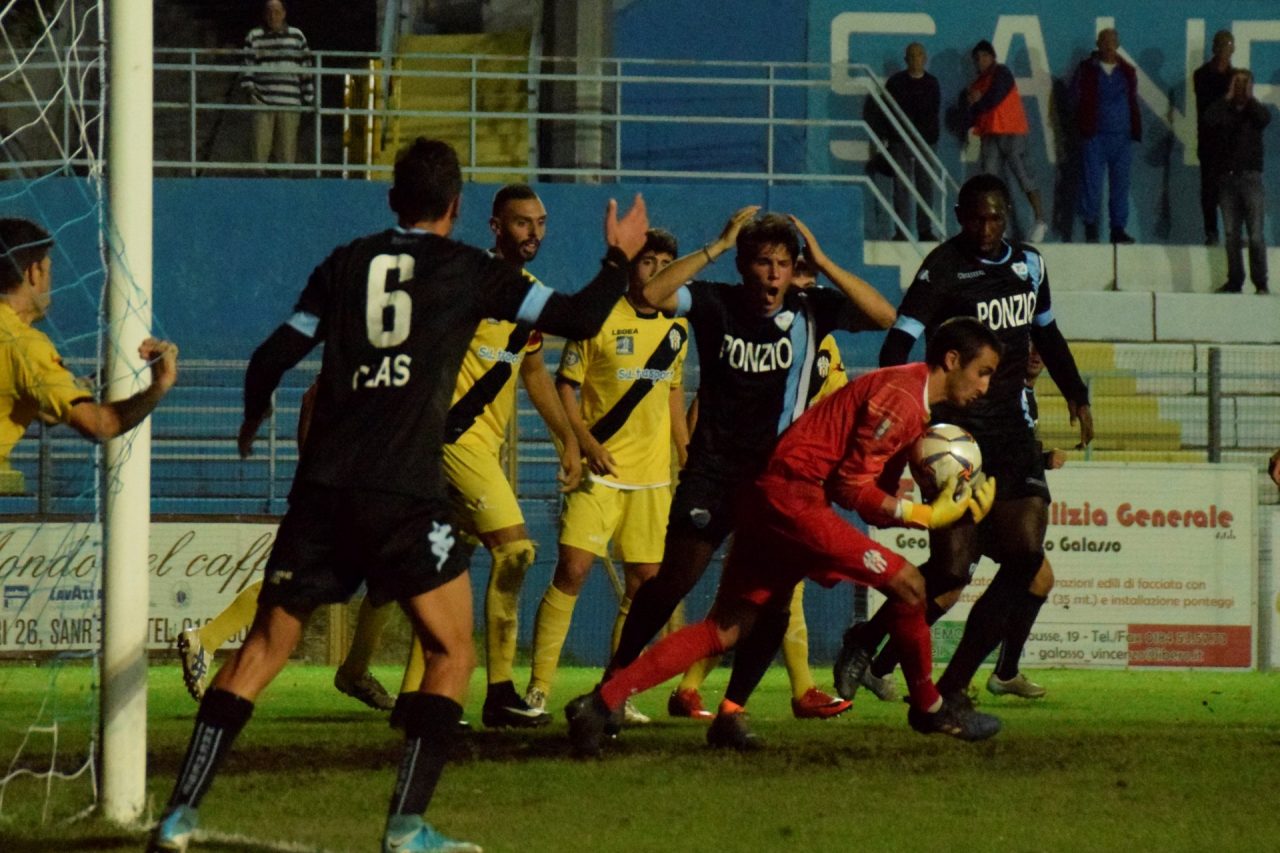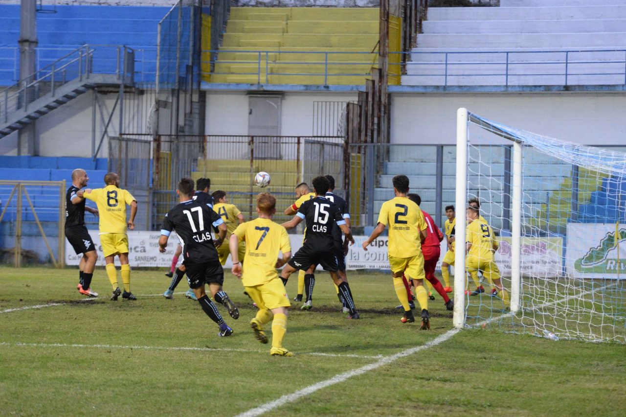 Al 10’ la prima grande occasione per la Sanremese. Molino batte una punizione tesa dalla sinistra e Castaldo, di testa dall’interno dell’area piccola, la mette alta.