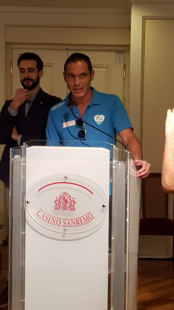 Si è tenuta quest’oggi, al casinò di Sanremo, la presentazione ufficiale della Sanremese Calcio per la stagione 2018-2019. I bianco-azzurri, anche quest’anno, dopo aver visto fumare il sogno della promozione davvero per una manciata di goal, militeranno i serie D, girone E. Nel corso della presentazione la dirigenza ha ricordato quanto la squadra sia un tassello importante per il benessere della Città dei Fiori. Anche quest’anno, la società ribadisce .la volontà di collaborare con tutte le altre squadre del territorio per creare un florido vivaio, dando grande importanza al settore giovanile.
