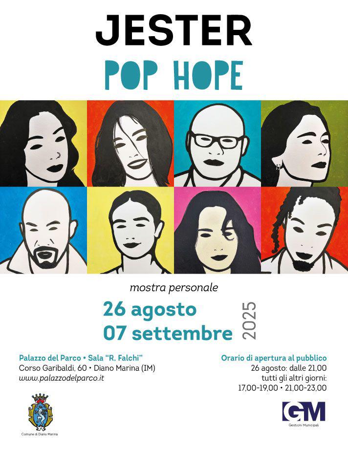 Diano Marina si prepara ad accogliere una nuova tappa del percorso artistico di Jester, nome d’arte di Sergio Nappo, con la personale “Pop Hope”, che inaugurerà martedì 26 agosto e sarà visitabile fino al 7 settembre 2025 presso il Palazzo del Parco – Sala “R. Falchi” (Corso Garibaldi 60).