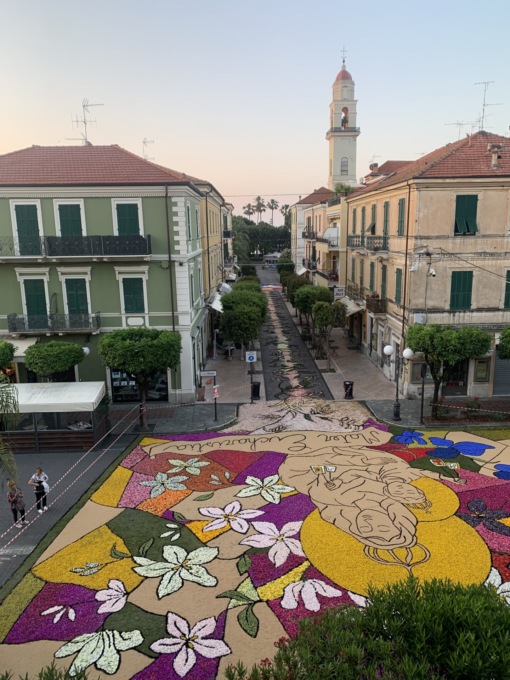 Torna anche quest’anno, più bella che mai, la tradizionale “Infiorata del Corpus Domini” nel centro cittadino di Diano Marina, evento religioso e folkloristico realizzato dal gruppo “Amici dell’Infiorata”, capitanato dall’artista Nives Bonavera, che si è adoperato instancabilmente tutta la notte per realizzare una vera e propria opera d’arte.