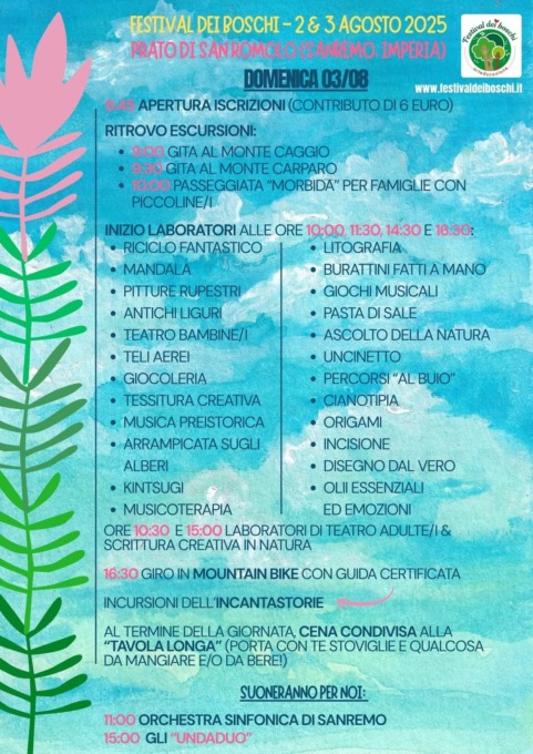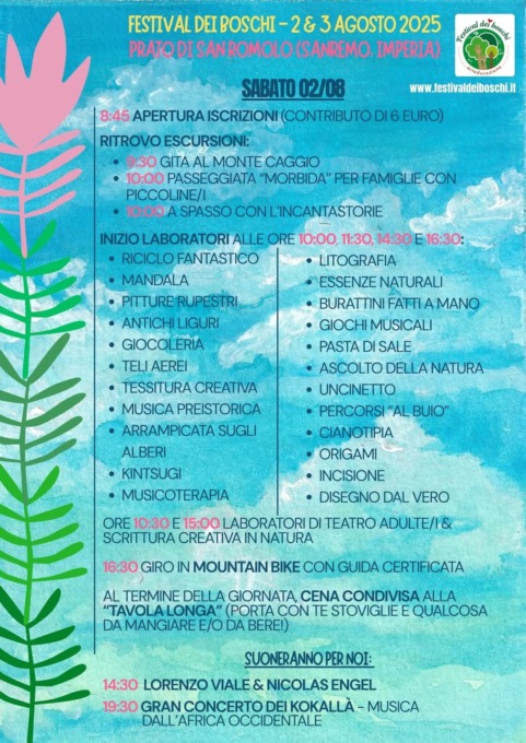 Per dettagli aggiornati sul programma, visitare le pagine Facebook e Instagram del Festival dei Boschi e il sito www.festivaldeiboschi.it.