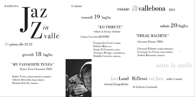 Per tenere fede alla filosofia del festival, nella prima serata verrà dato spazio ad una formazione locale, “Enrico Testa Chromatic Trio”, un trio di ottimo livello con molti annui di esperienza; la seconda serata vedrà il ritorno di Rodolfo “Rudy” Cervetto, accompagnato da quattro bravissimi musicisti, per un tributo al grande trombettista Kenny Dorham.